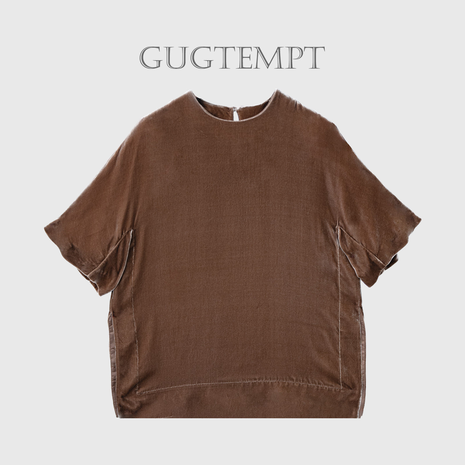 [何仙儿专属] 175g真丝丝绒开衩短袖上衣女设计感KSY5276