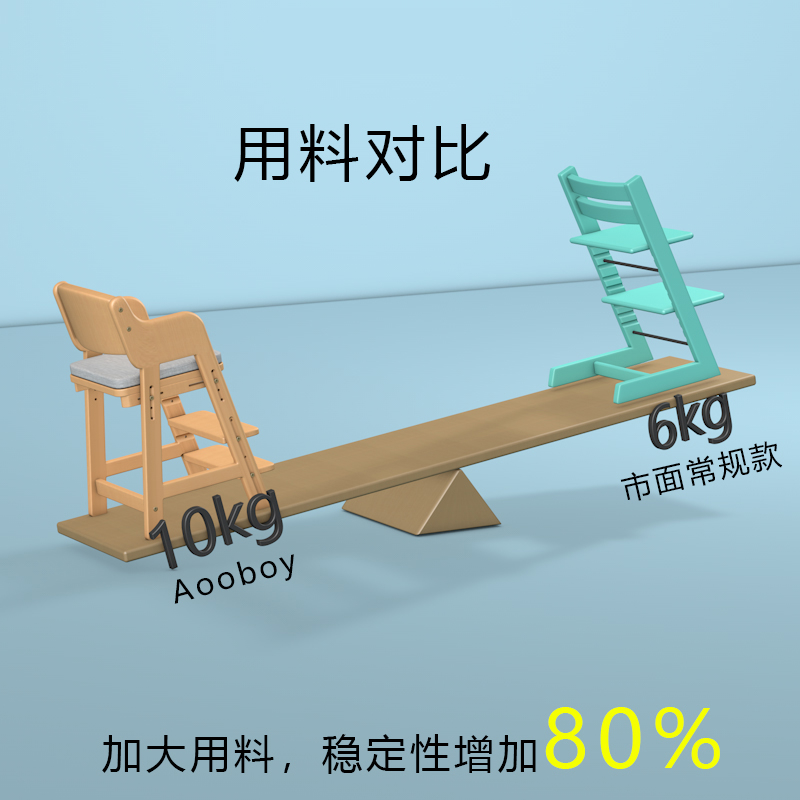 日本Aooboy儿童餐椅实木可升降学习椅宝宝餐桌椅成长椅吃饭家用