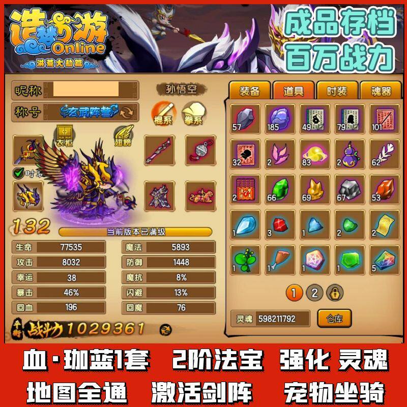 4399造梦西游4洪荒大劫篇 成品账号 百万战斗力满级被动六支金羽