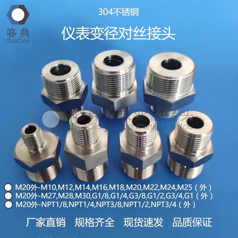 304不锈钢仪表变径双外丝螺纹转换接头 M20外转M10M12M14M24M25外