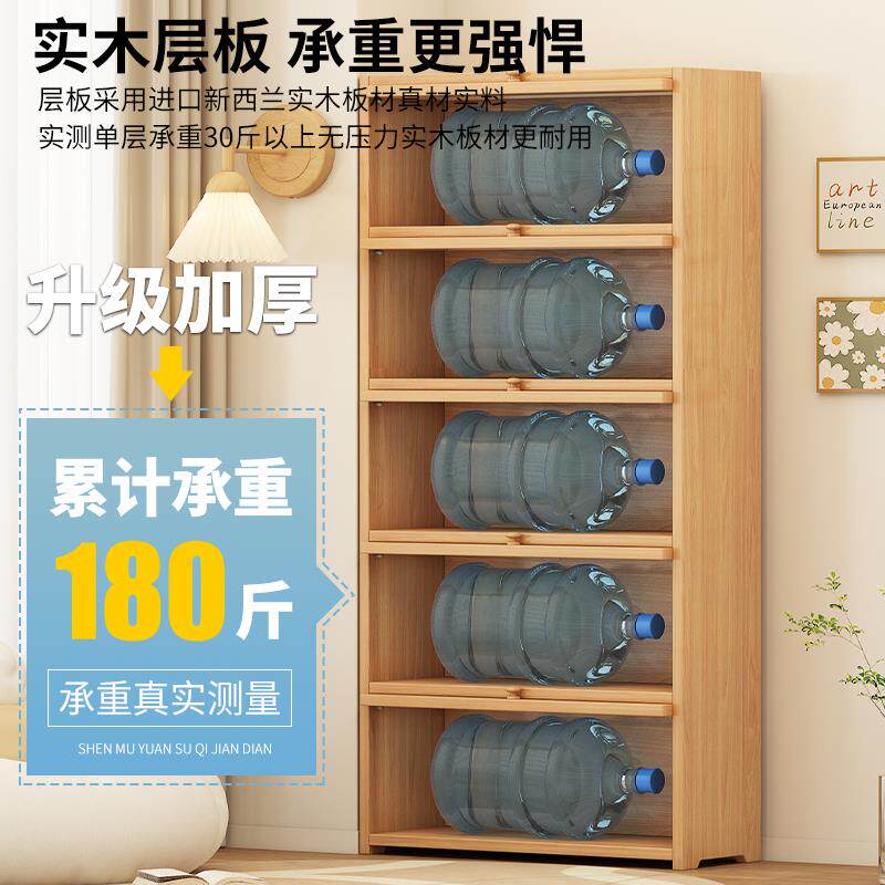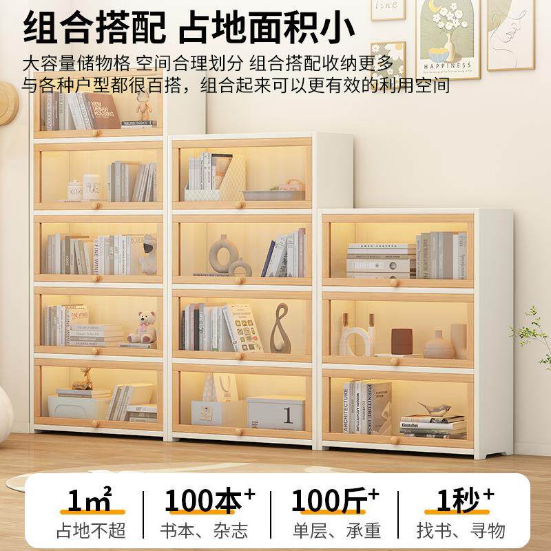 书架落地置物架一体靠墙收纳柜奶油风客厅多层储物展示柜实木