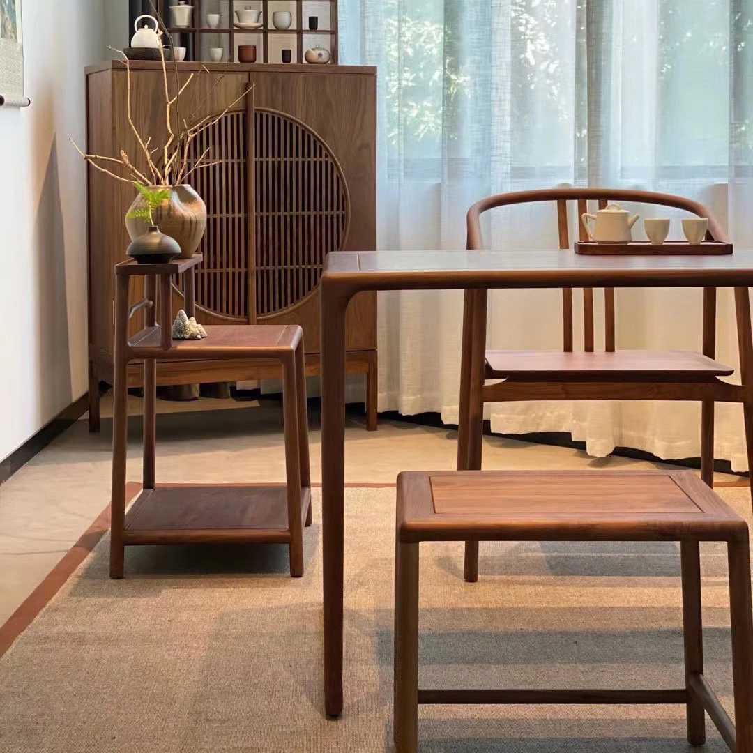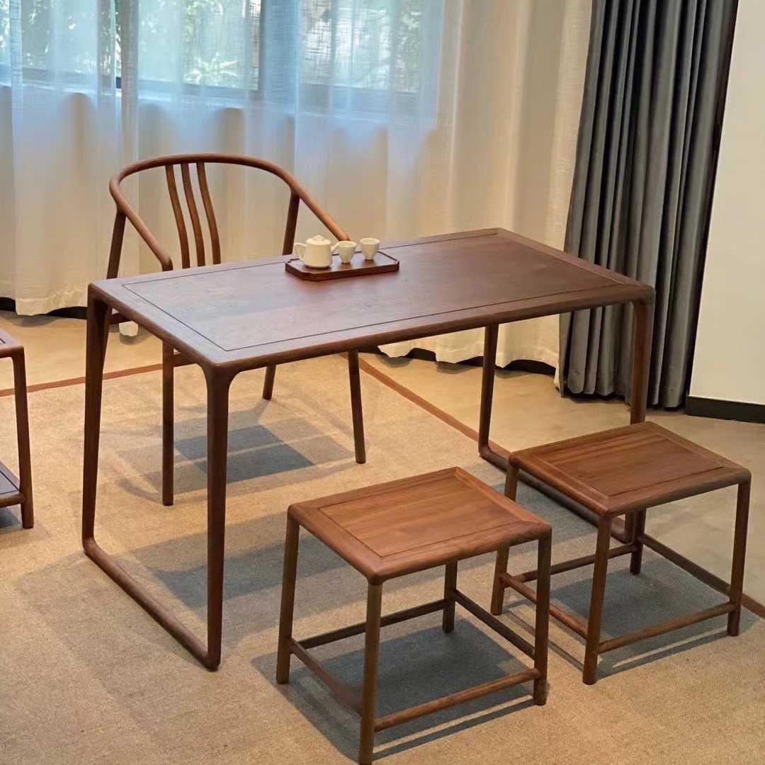 黑胡桃木茶桌新中式阳台茶桌椅组合小型泡茶桌实木书桌小茶台