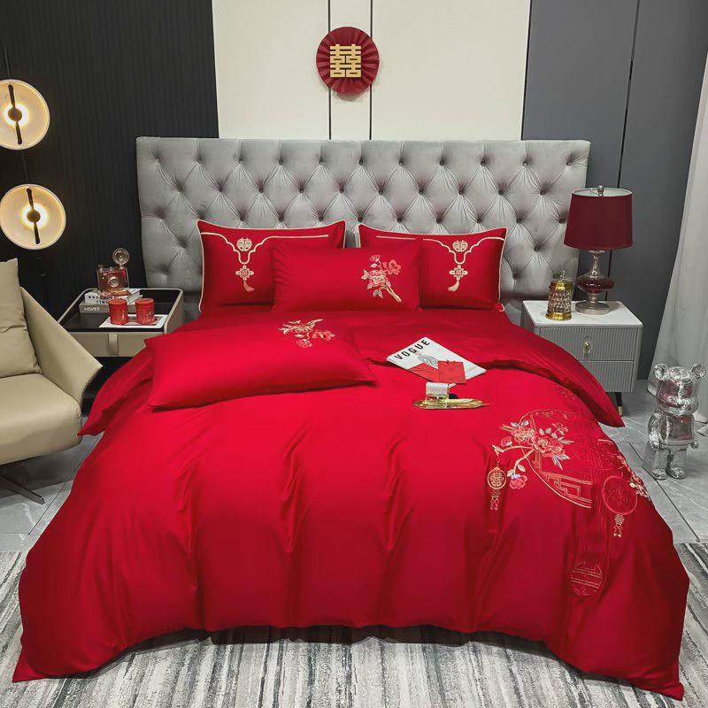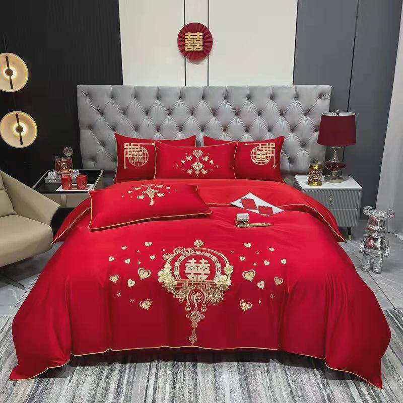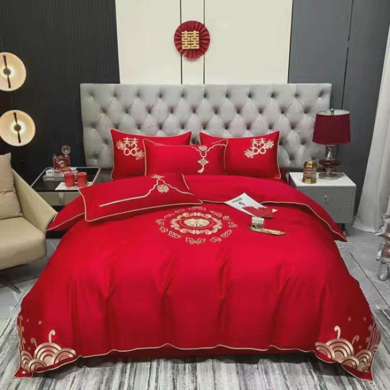 婚庆四件套新婚六件套床上用品60支婚被婚礼结婚床上用品大红