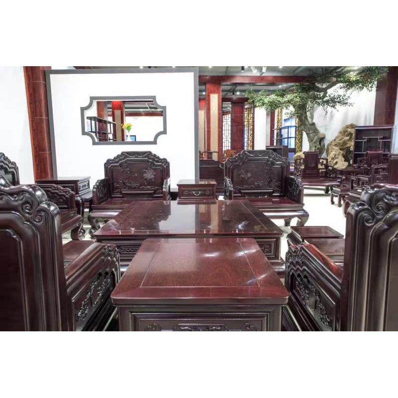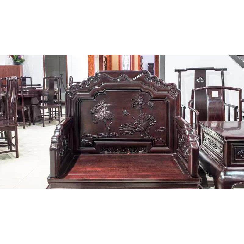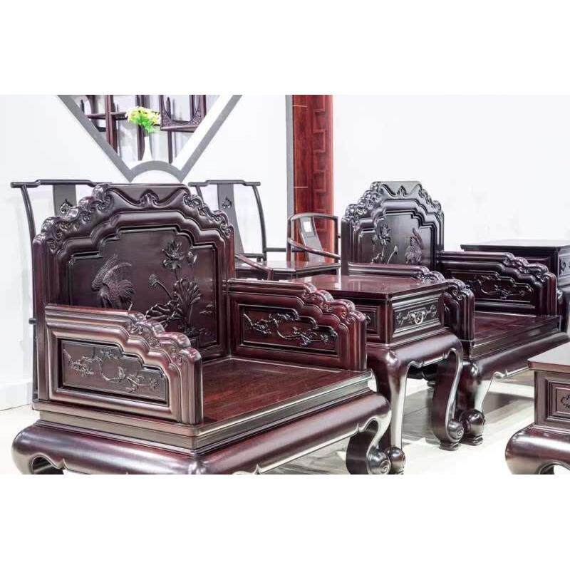 非洲小叶紫檀国色天香荷花宝座大沙发十三件套血檀沙发交趾黄檀