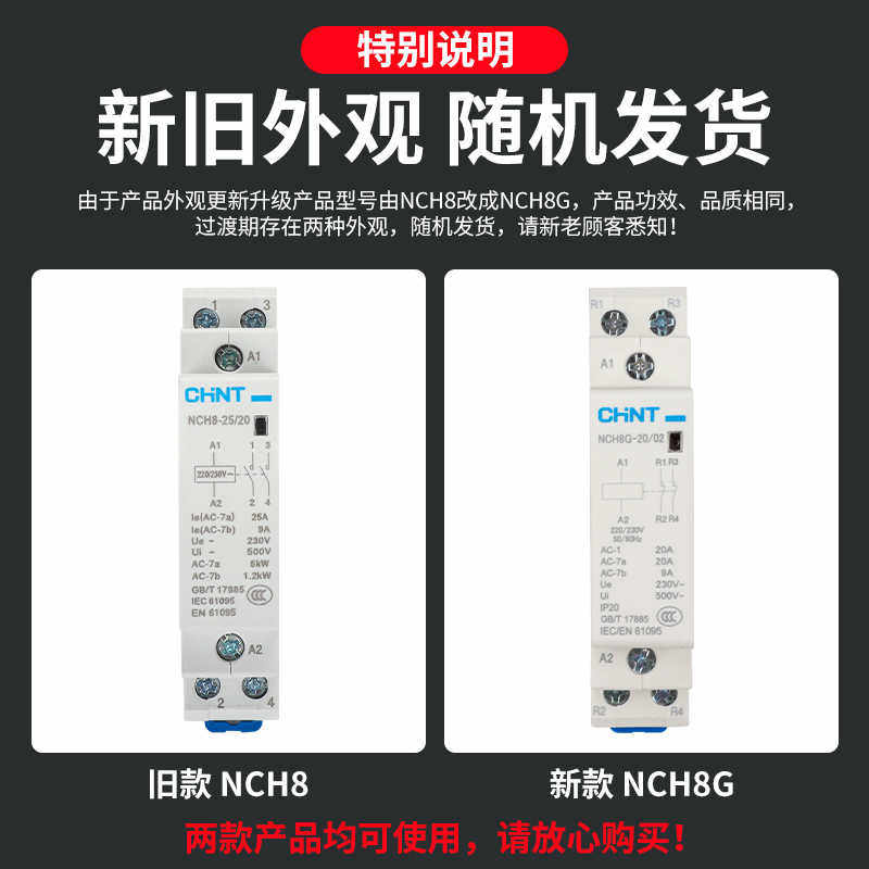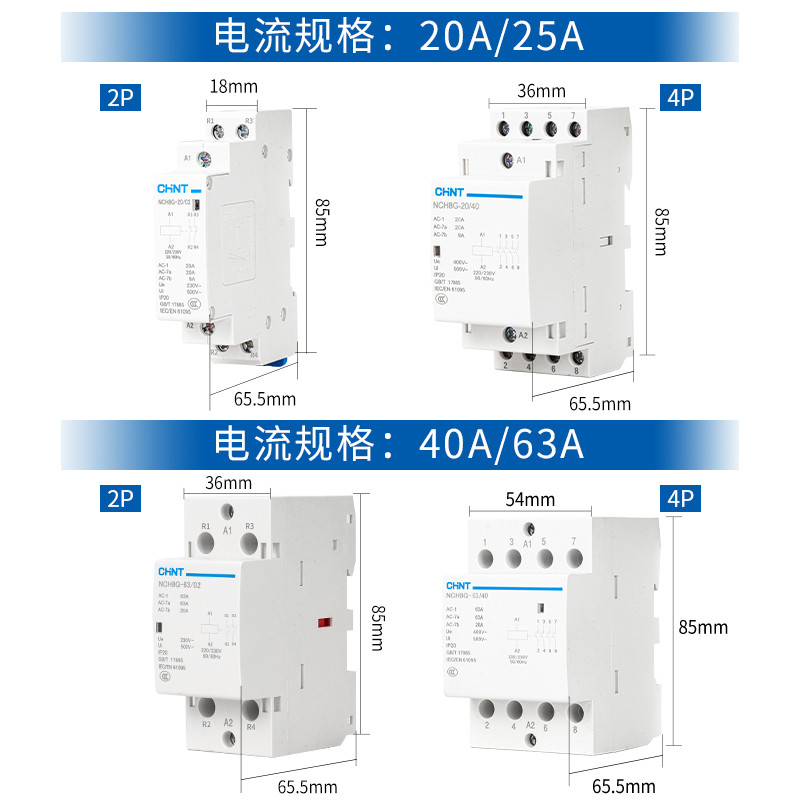 NCH8家用交流接触器220v单相小型40A导轨式25A微型静音20A单P