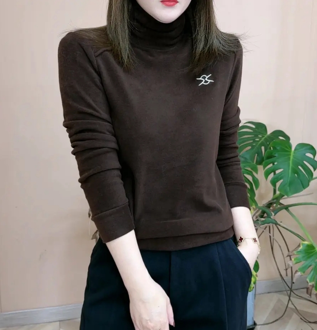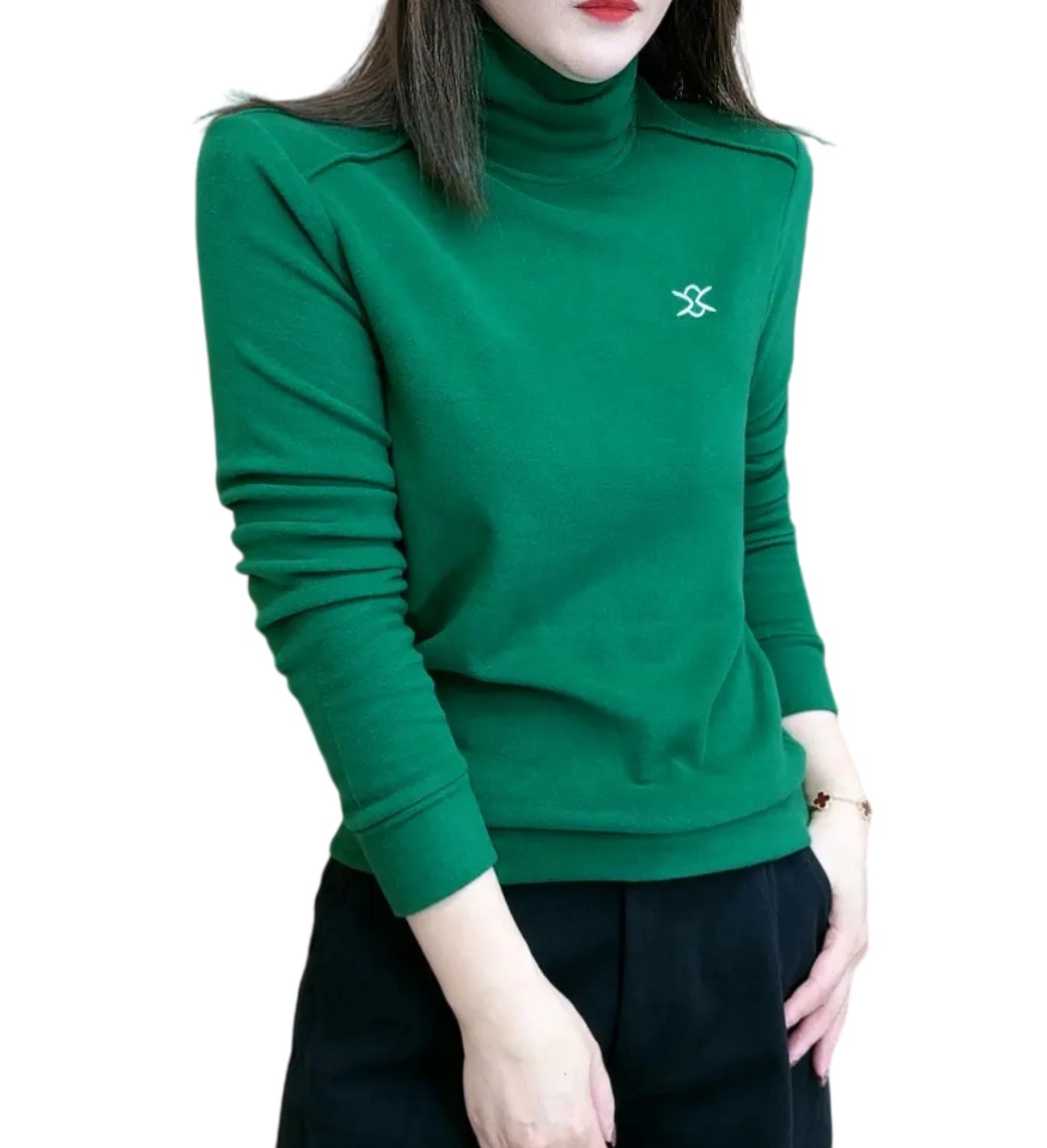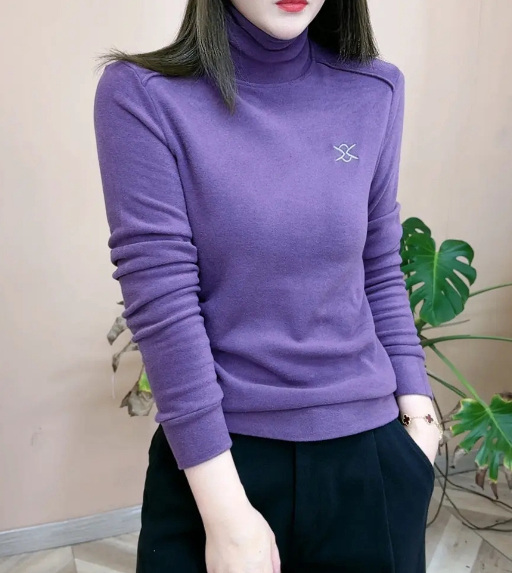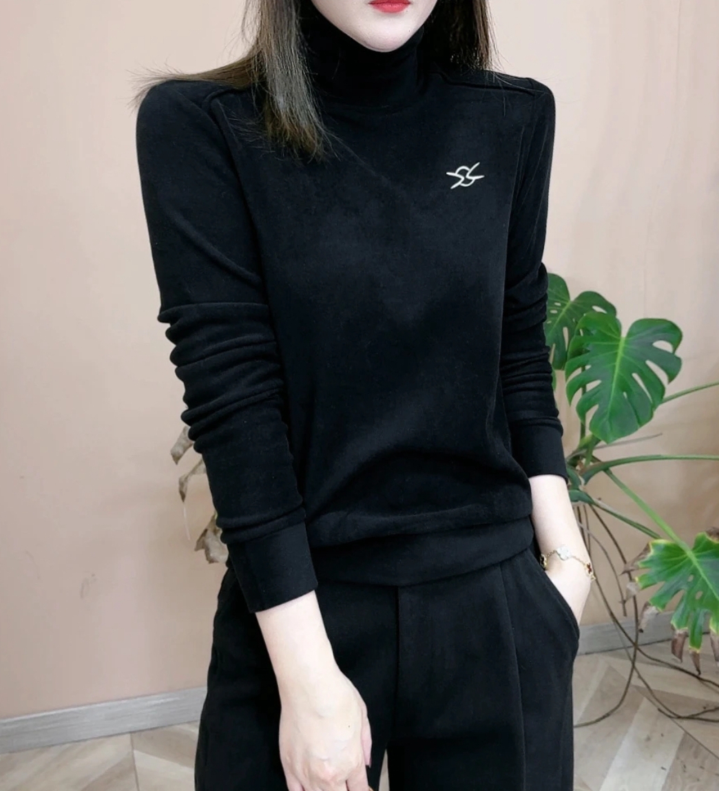 日常通勤高领双面德绒上衣打底衫女2024冬季新款百搭保暖卫衣绒衫