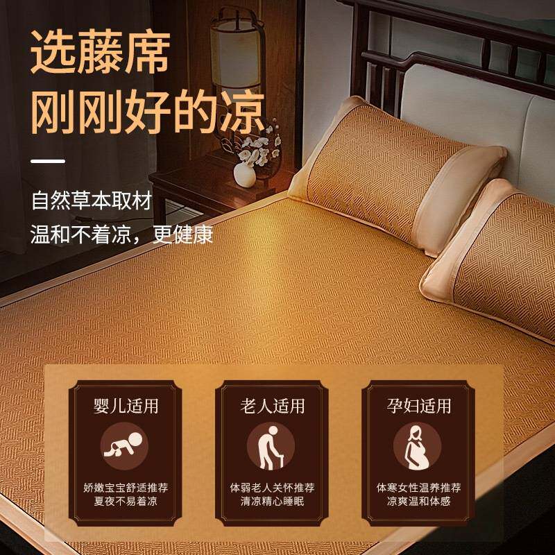 厂家直销凉席藤席三件套双人床可折叠学生宿舍空调冰丝席 代发