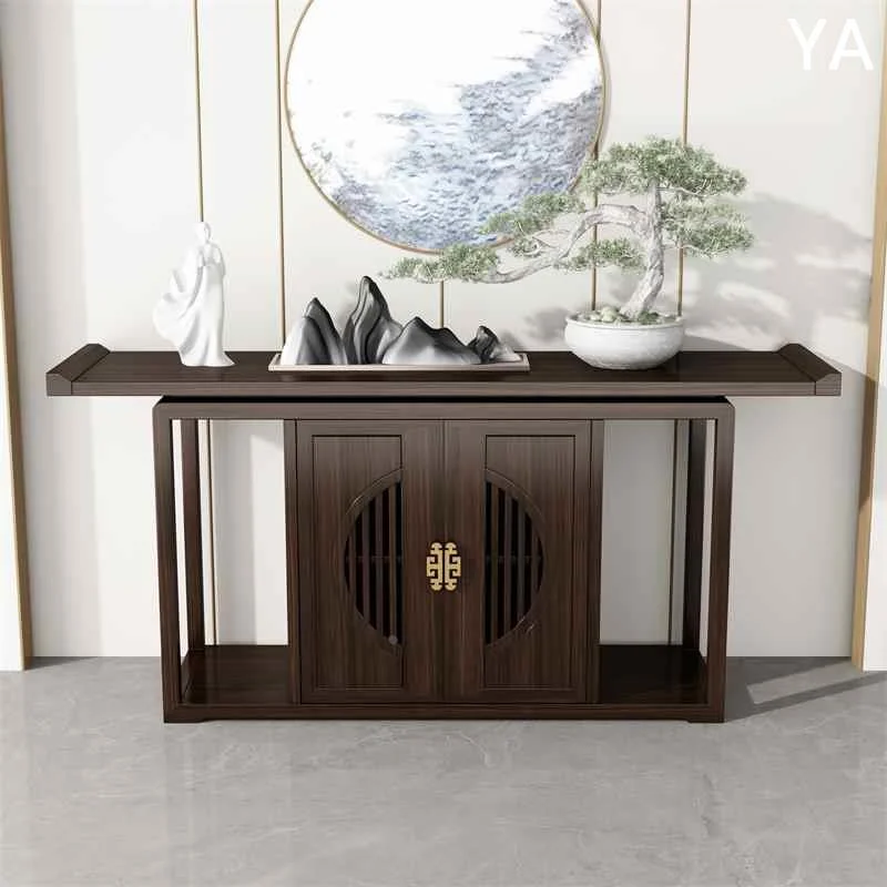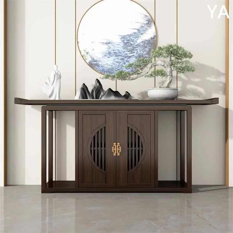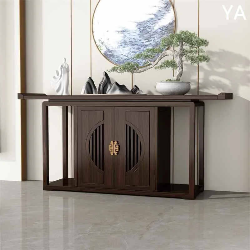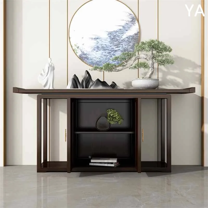 新中式玄关桌实木禅意简约玄关柜乌金木储物落地客厅入户门新款