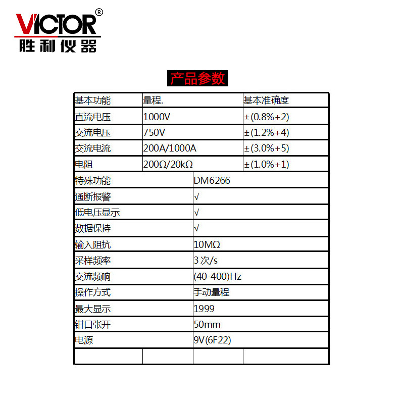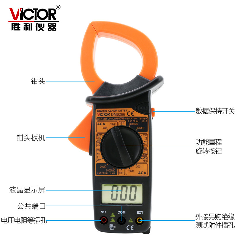 胜利数字钳形表DM6266/6015F大电流钳型钳流表钳形万能表温度频率
