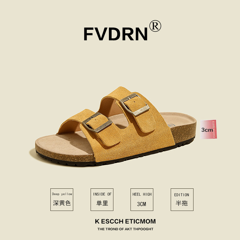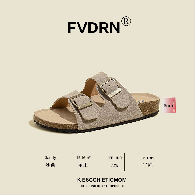 垫脚全真皮~勃肯鞋女2025新款休闲搭扣凉拖女夏外穿博肯凉鞋
