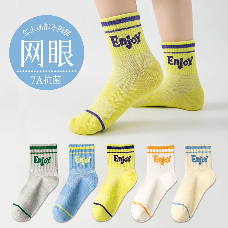 无骨抗起球中筒薄款儿童夏季春秋防臭网眼春秋棉袜中大童学生潮袜