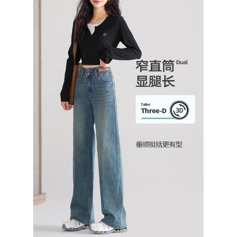 【交个朋友双11省省省】阔腿牛仔裤女高腰宽松窄版直筒裤子