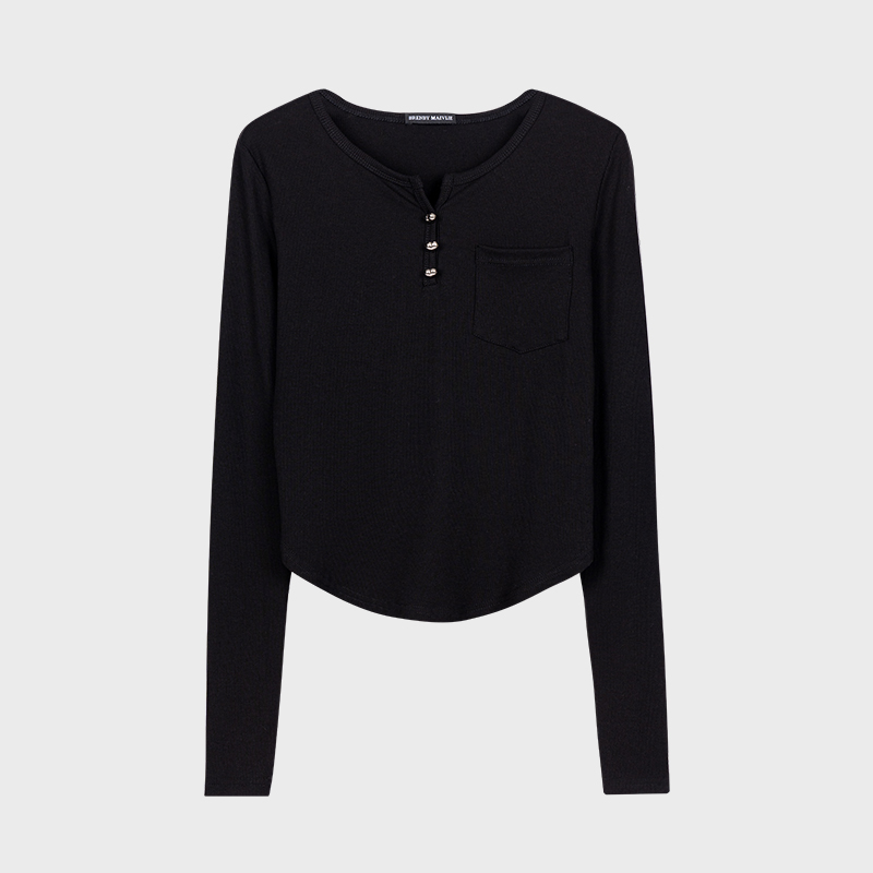 BF长袖上衣女针织打底衫女2024新款别致修身显瘦显高早秋chic上衣