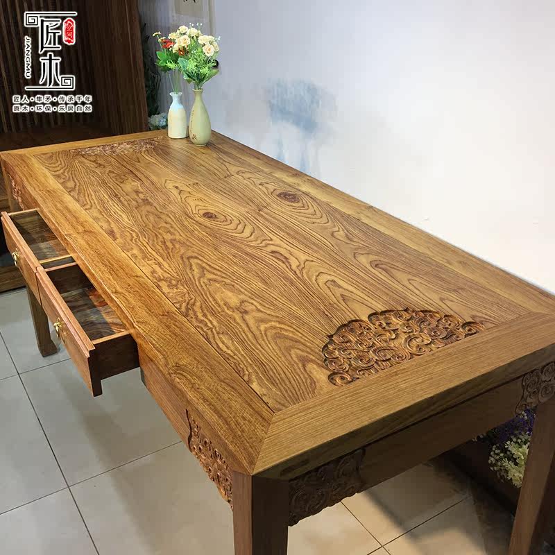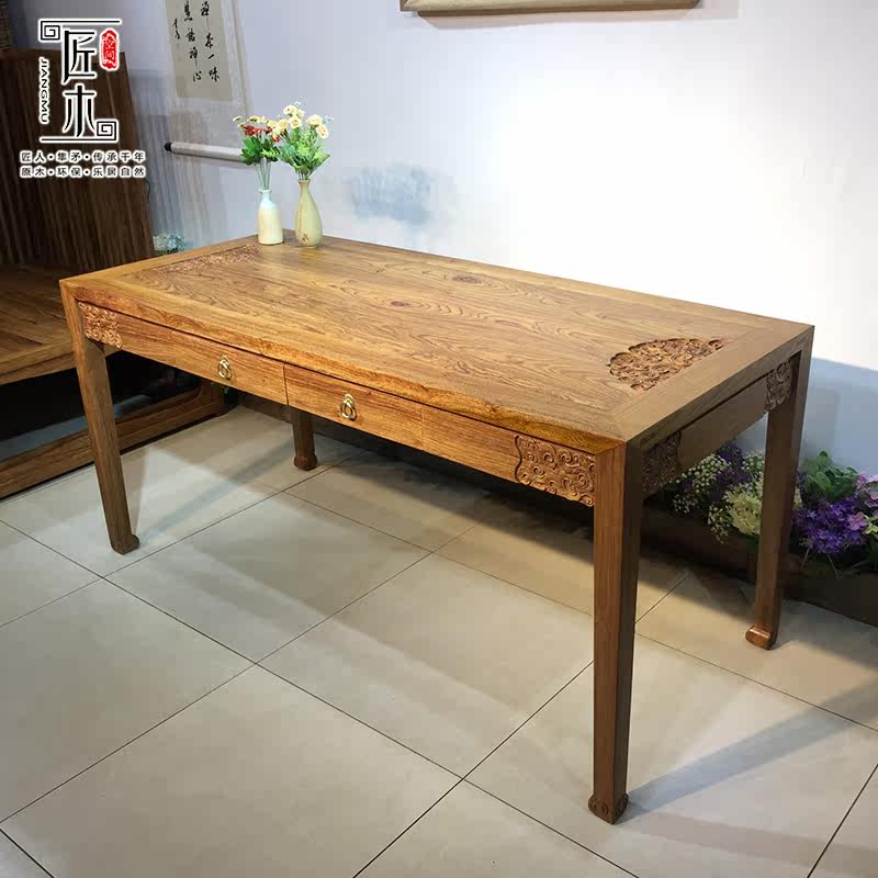 中式实木画桌简约写字台家用一体书桌椅组合商用办公桌移动电脑桌