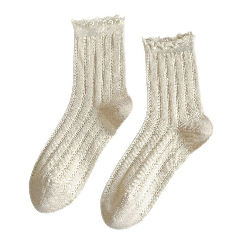 【CC】纯棉袜子女夏季薄款中筒袜木耳边网眼透气木耳边袜A056