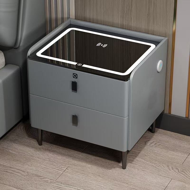 智能床头柜轻奢简约现代多功能带灯无线充床边柜家用卧室收纳柜