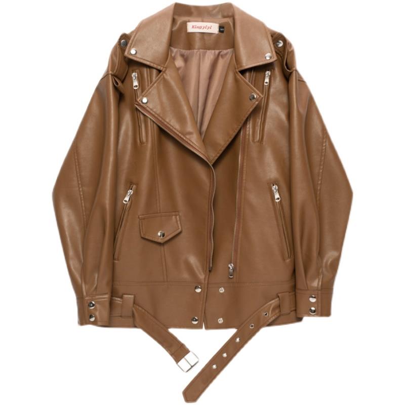 皮衣外套女宽松中长款春秋设计感PU皮机车夹克长袖上衣女士皮夹克