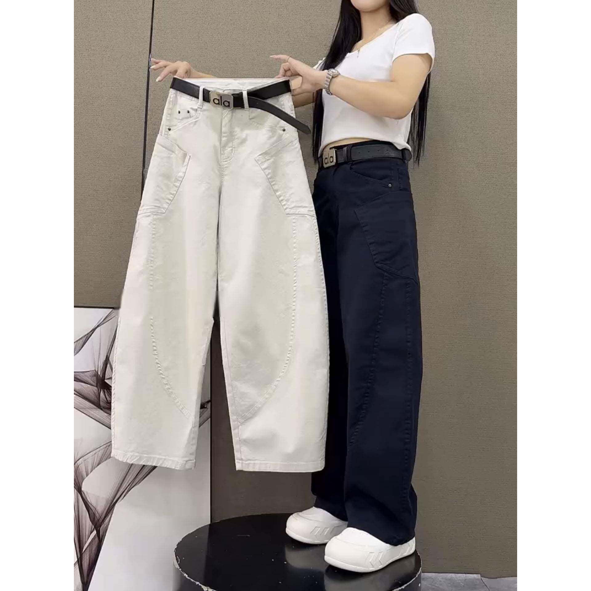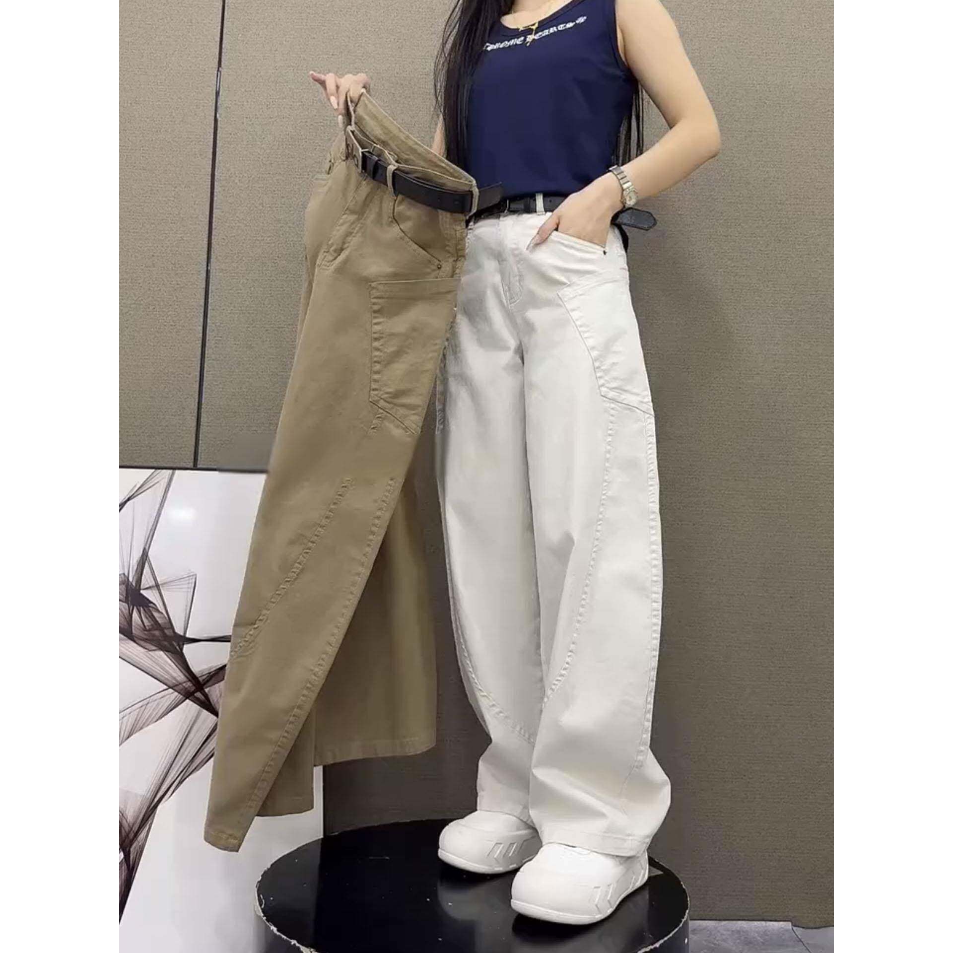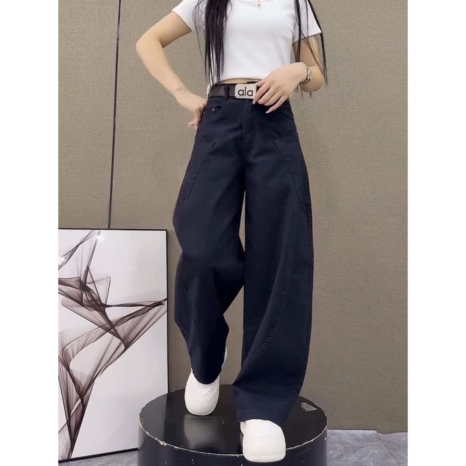 秋季新工装风格弯刀裤,宽松修身休闲及地裤,娇小高腰直阔腿裤
