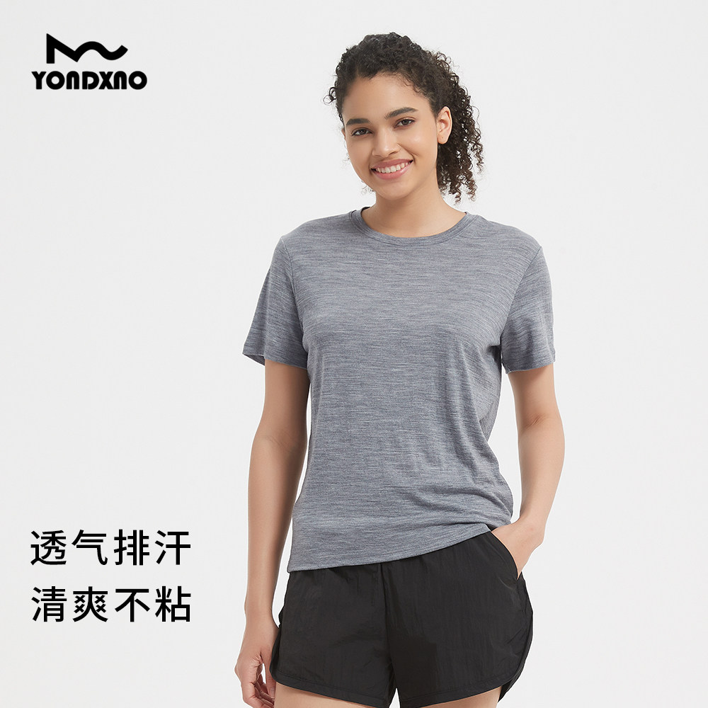 羊小诺美利奴羊毛速干衣女款合身版运动短袖美丽诺羊毛T恤180X