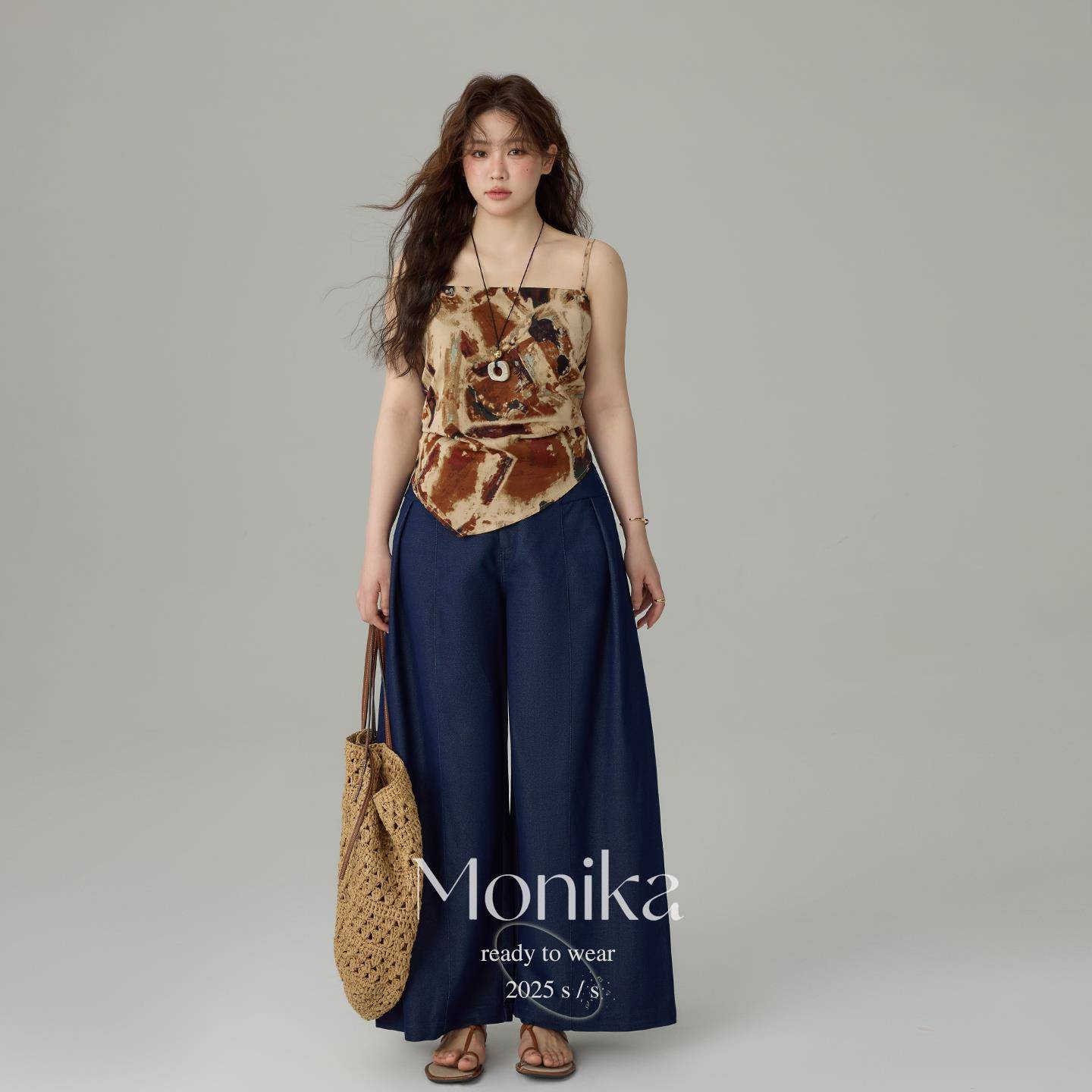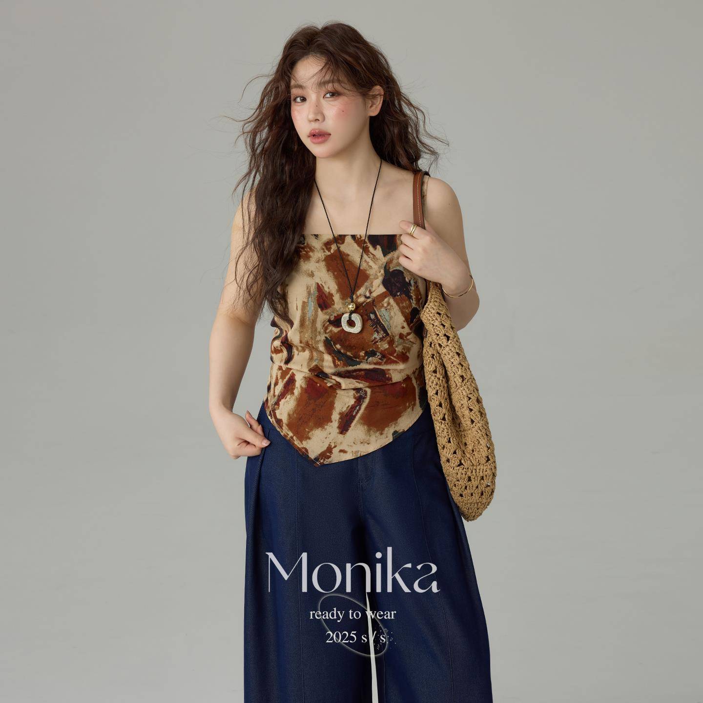 大码女装平口复古别致碎花小衫胖mm不规则度假吊带内搭外穿上衣