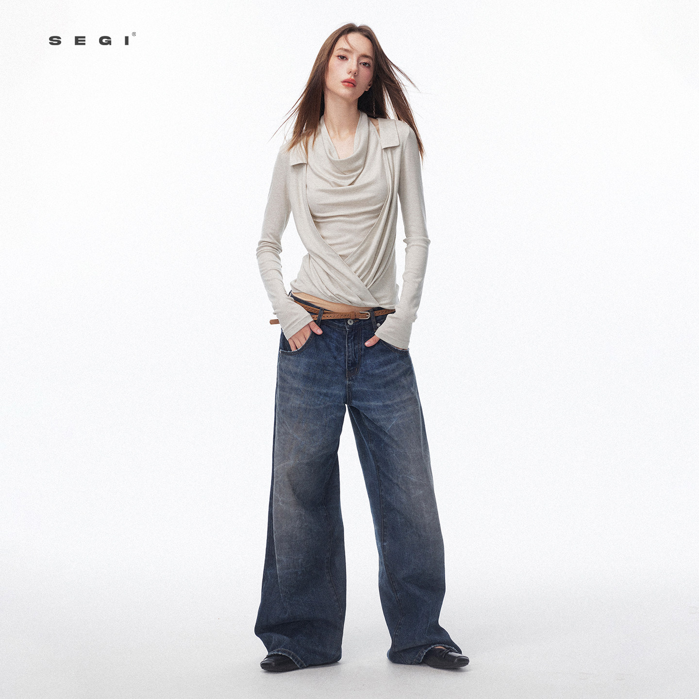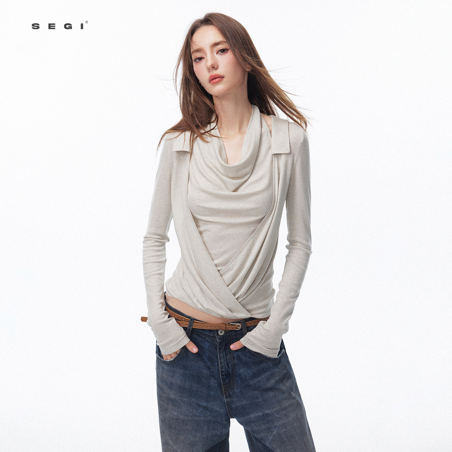 首页> 女装> SEGI 原创设计早春新款天丝羊毛假两件荡领打底长袖女高级感上衣