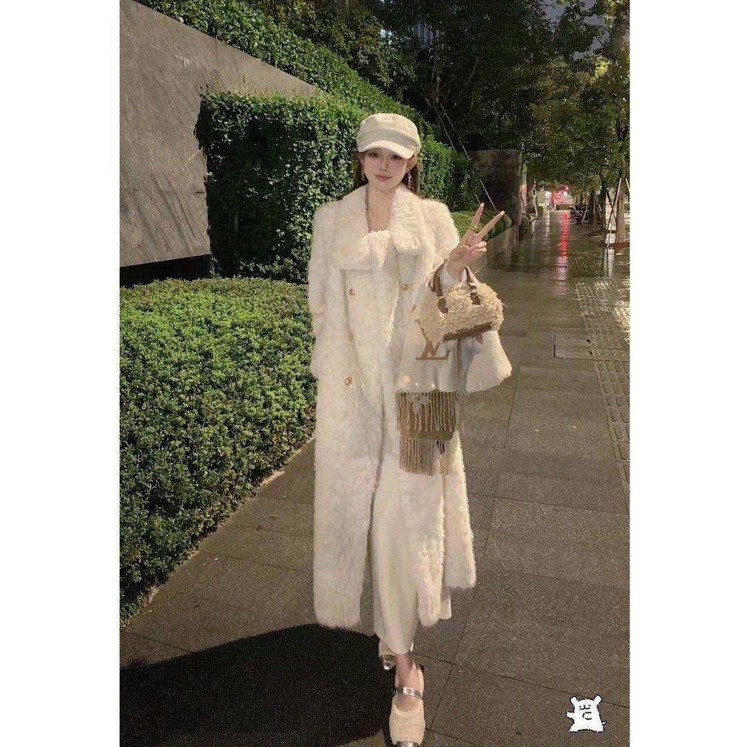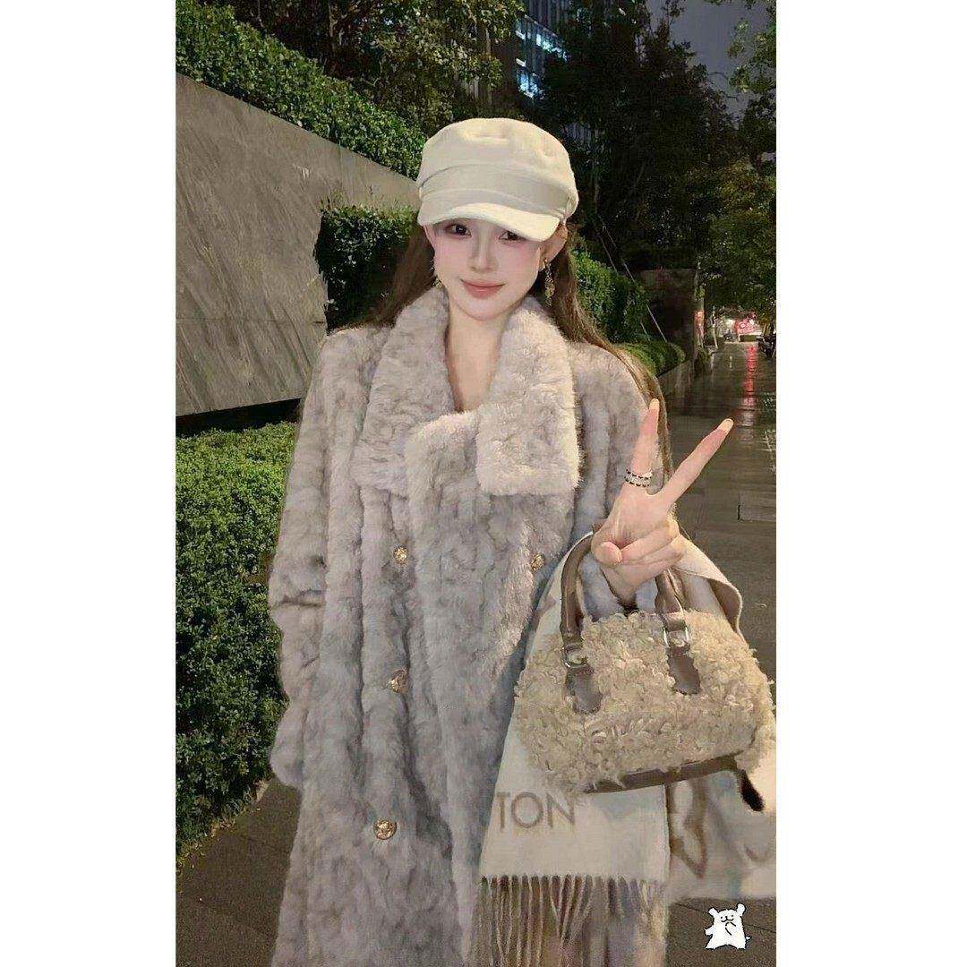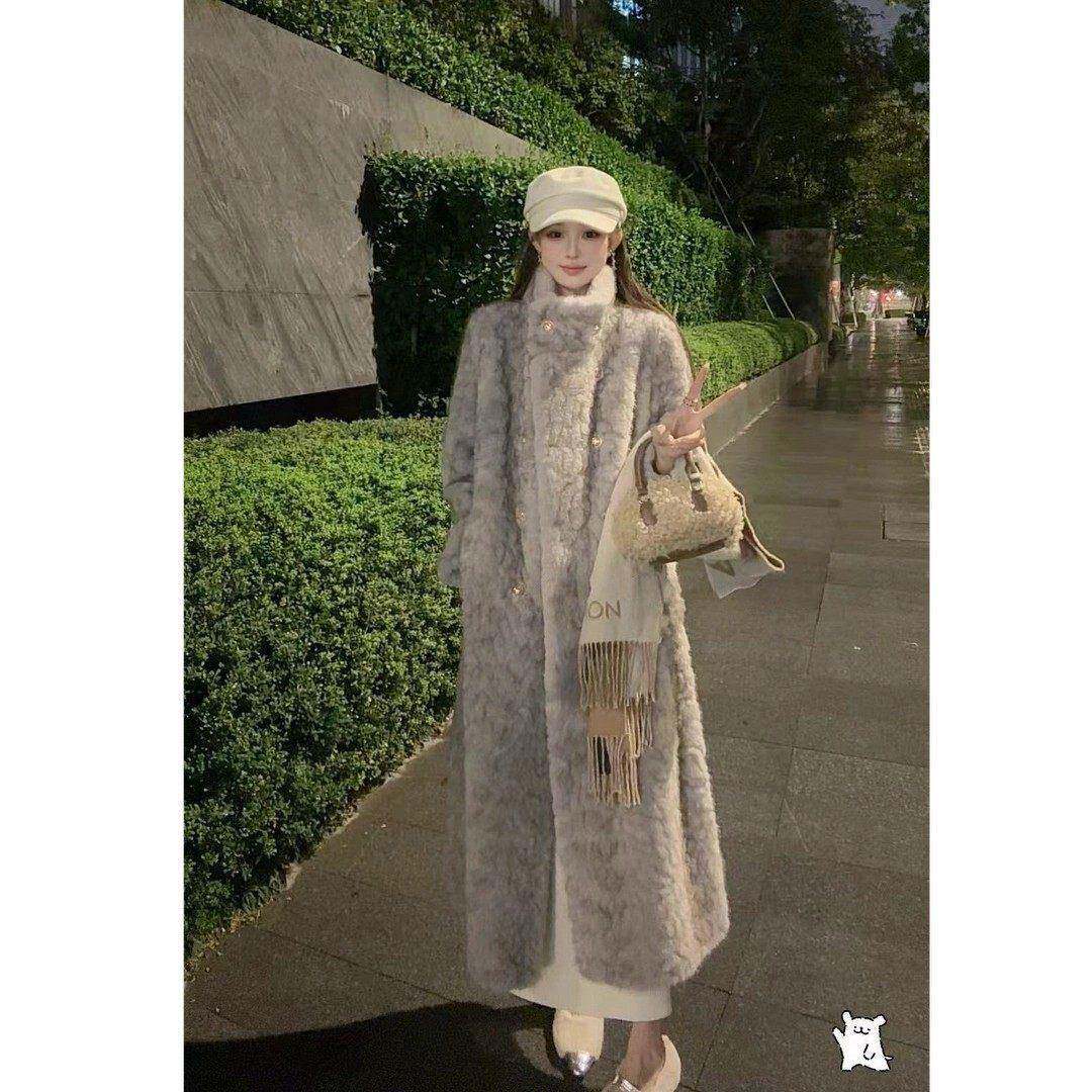 2025新款小立领花狐时尚百搭高级气质设计师冬装长款加厚毛毛外套