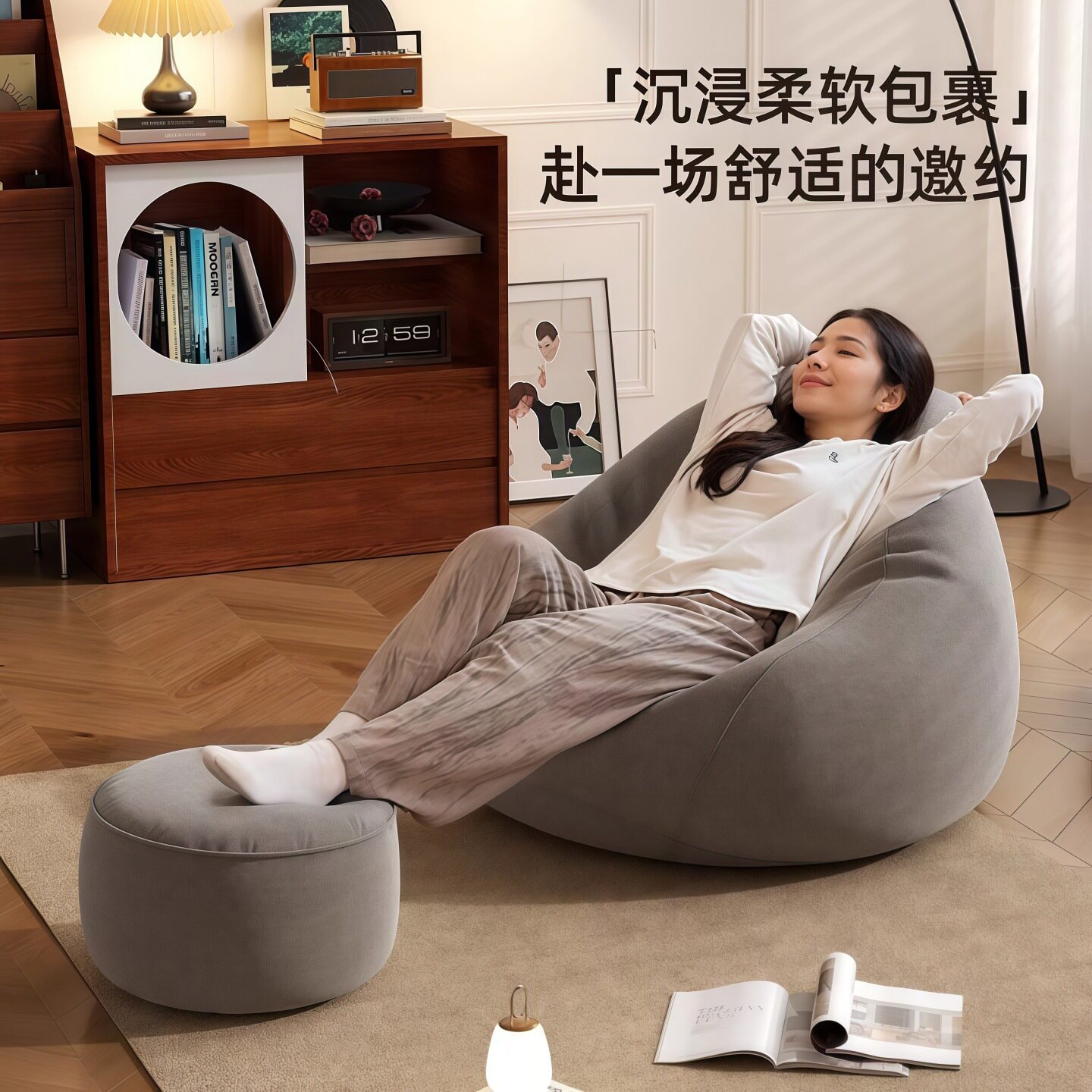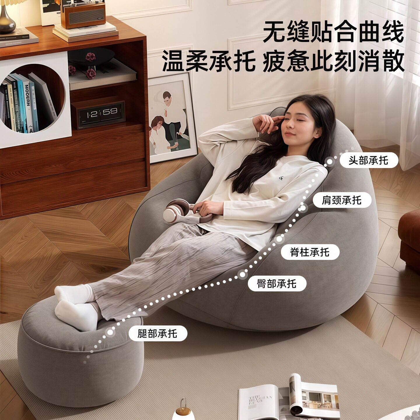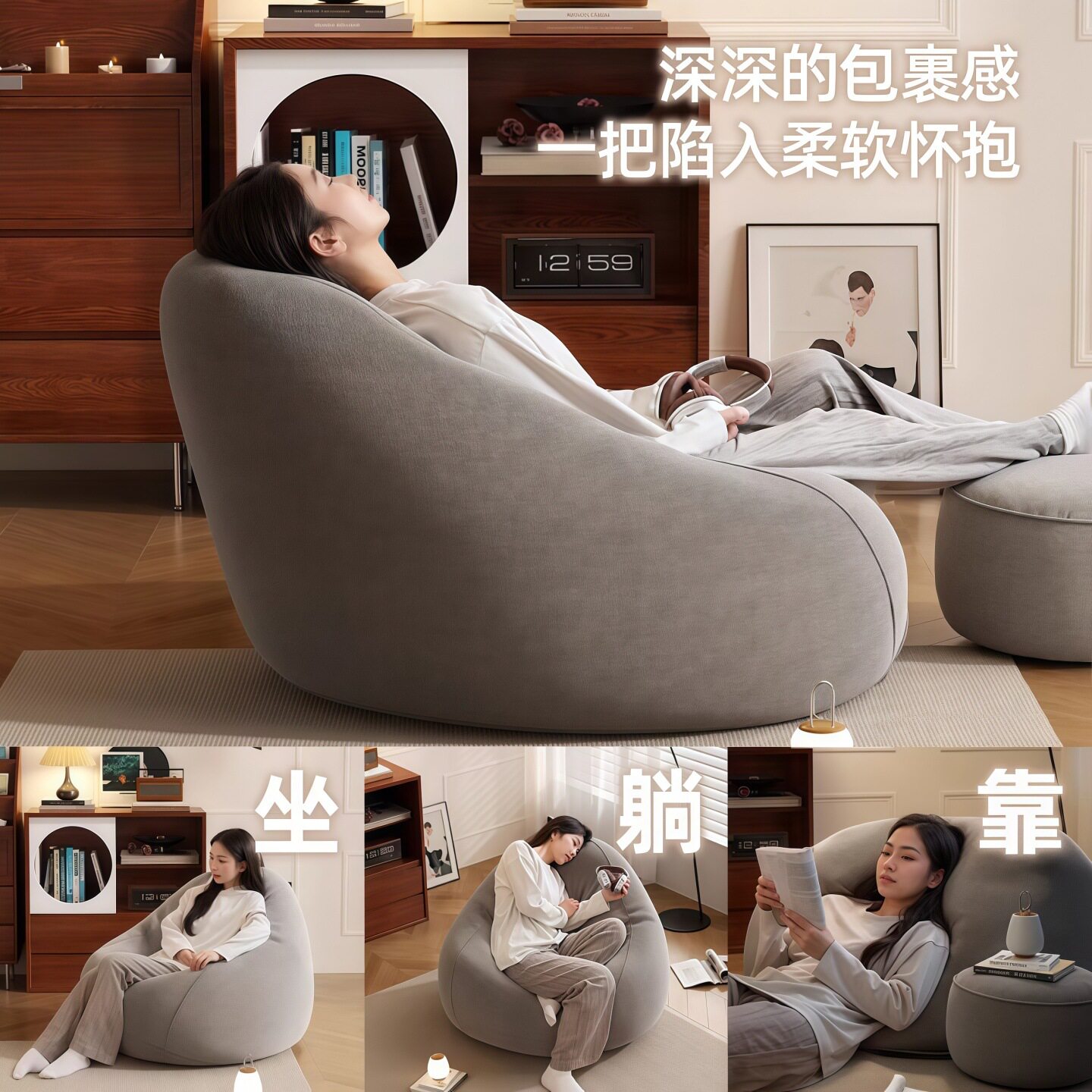 卧室小沙发懒人沙发可躺可睡休闲豆沙袋阳台大人家用休闲躺椅单人