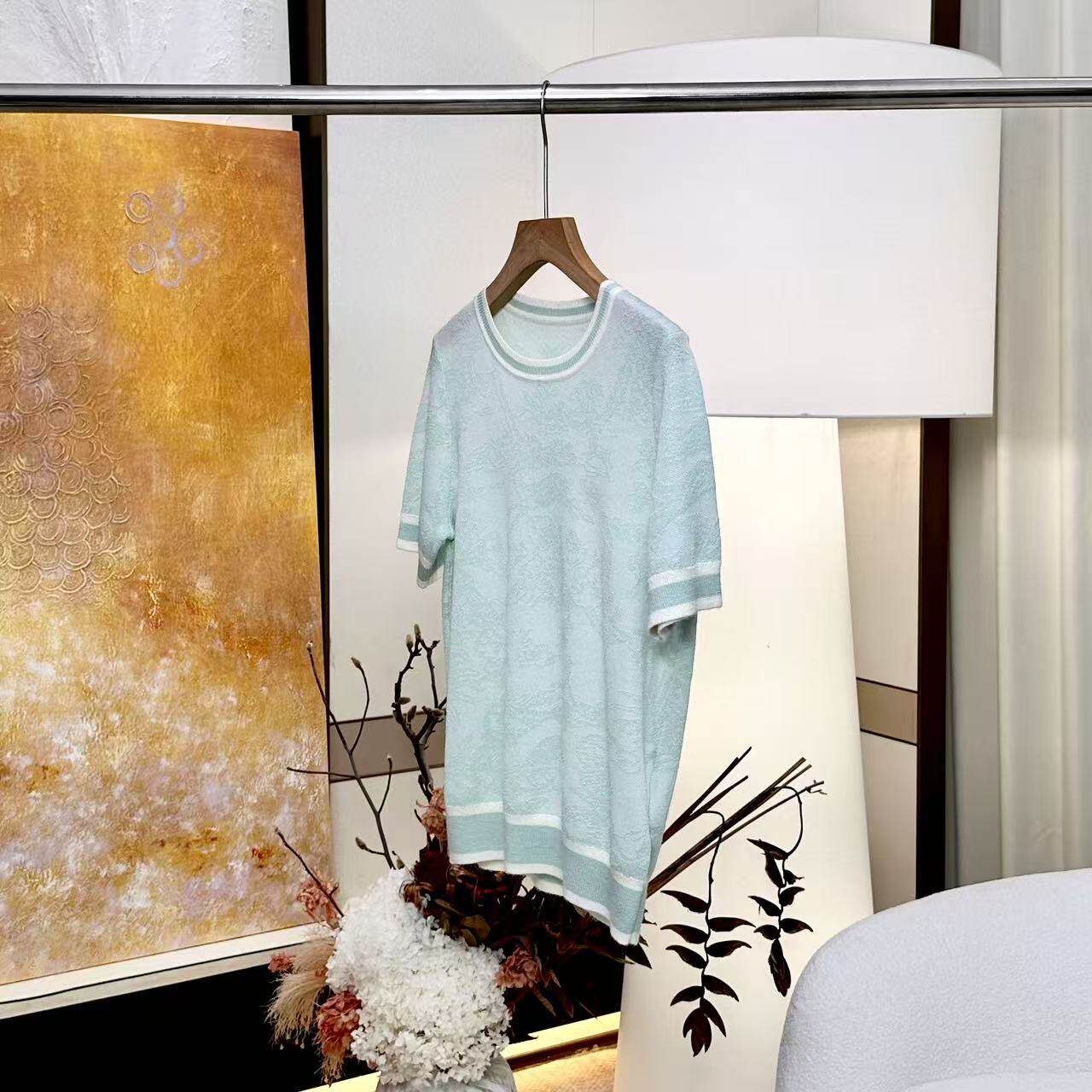 【妍妍】桑蚕丝/羊毛 立体肌理提花撞色边针织T恤ONSM24636191