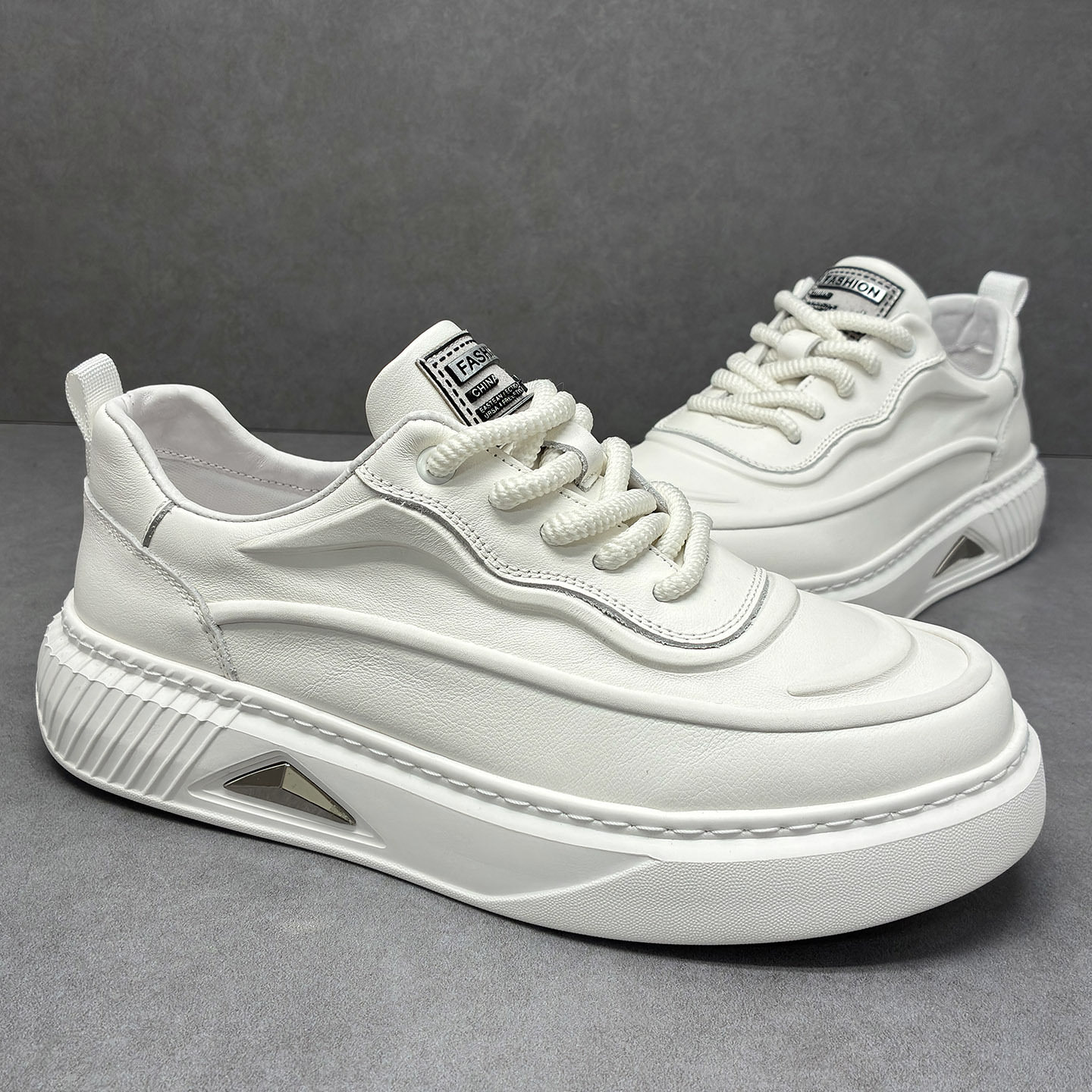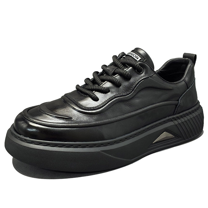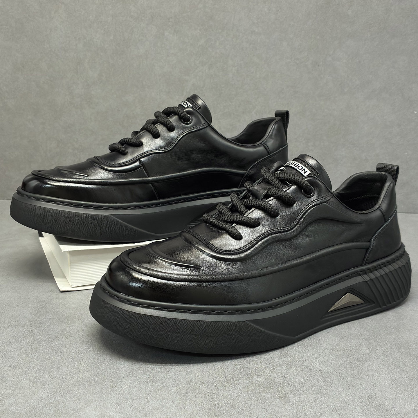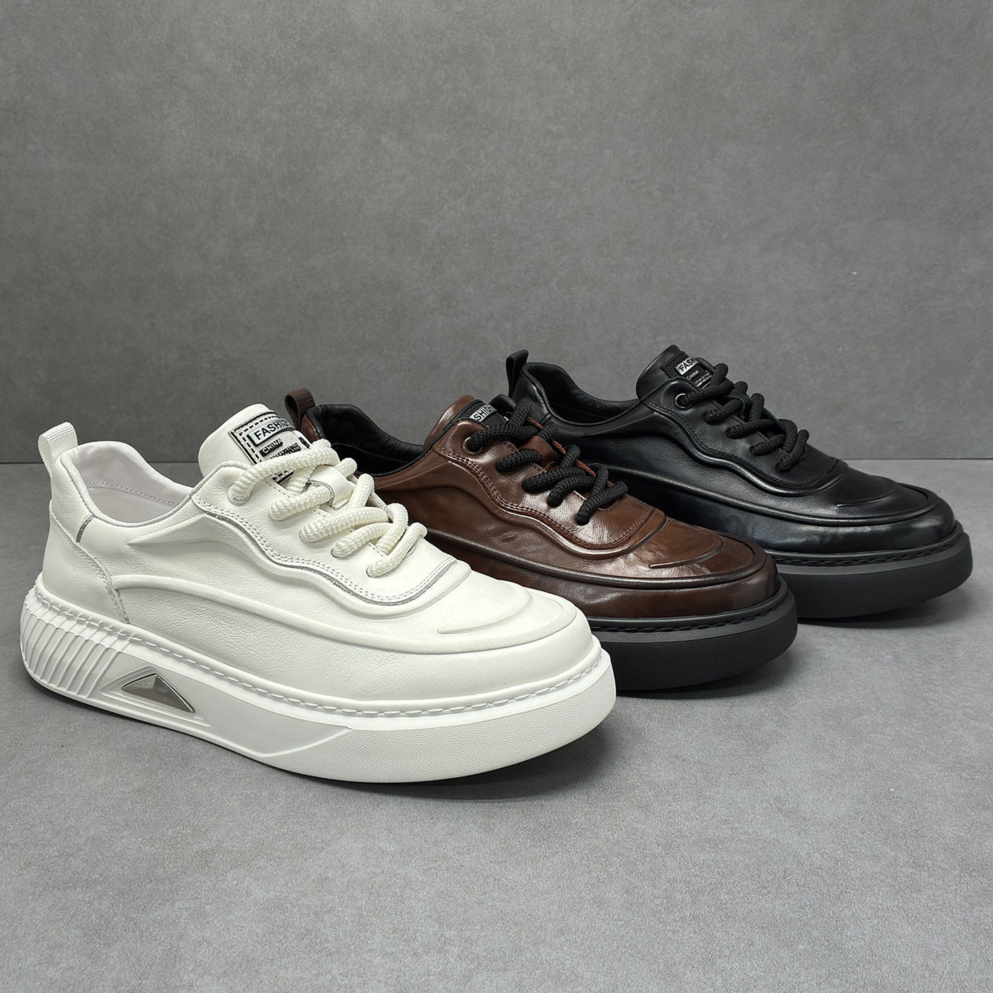 高端男士2025冬季新款男鞋头层牛皮休闲鞋厚底真皮板鞋低帮皮鞋