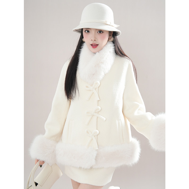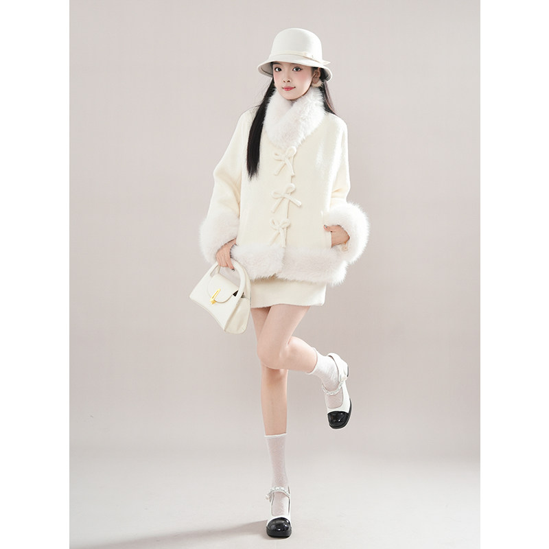 矜贵千金 冬日韩剧氛围感穿搭气质毛毛外套温柔半裙显瘦甜美套装
