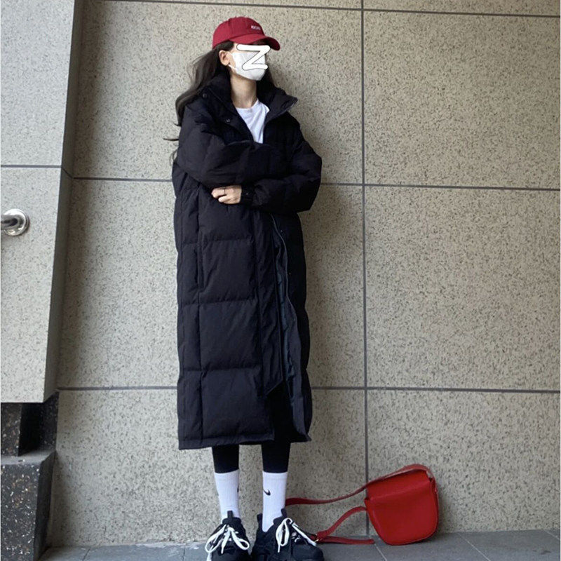 中戏同款黑色长款棉衣棉服女款2025新款冬季过膝韩版宽松加厚外套