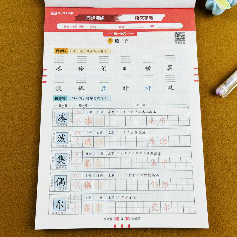 2026新版小学三年级下册语文字帖人教版同步生字练字帖带笔顺组词字词书写认读默写训练造句小学生3年级下学期写字课课练