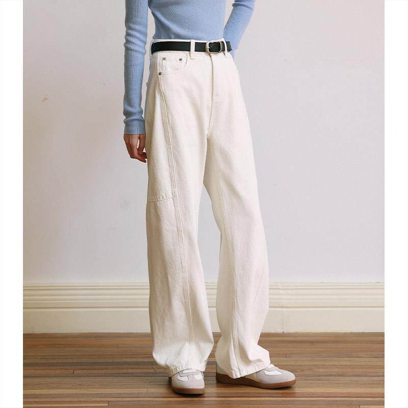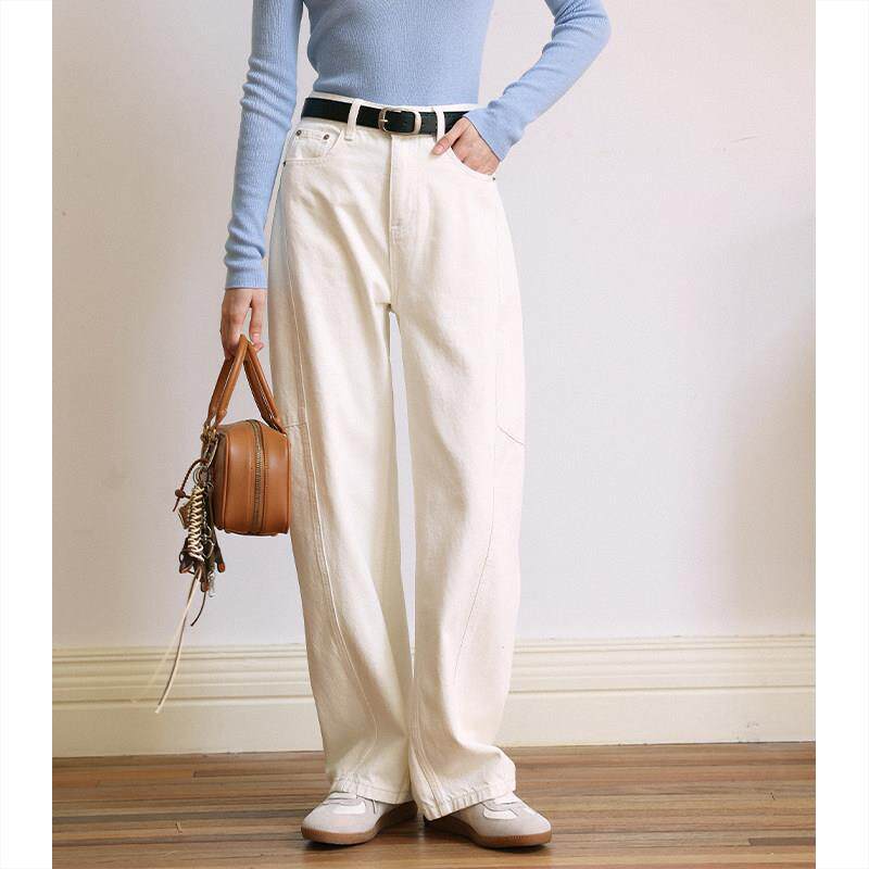 MUNNS白色新XEI阔腿牛仔裤女25季气高腰显瘦直质筒镰刀春款裤香蕉