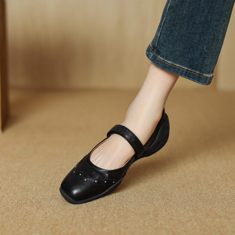 手工真皮~巨巨舒服~休闲厚底芭蕾鞋玛丽珍鞋女春秋内增高浅口单鞋