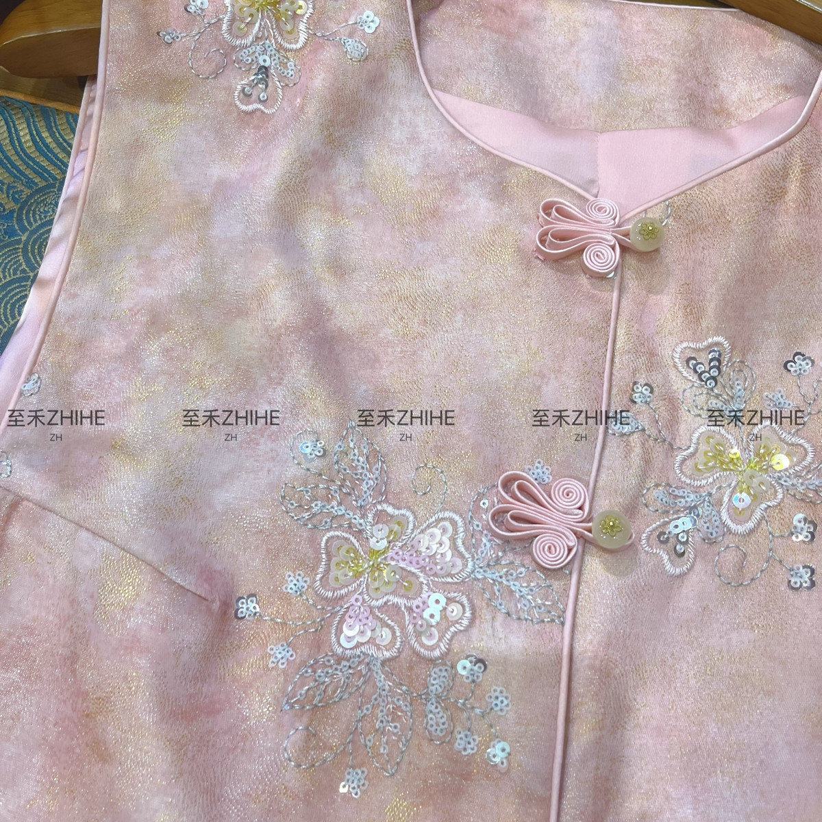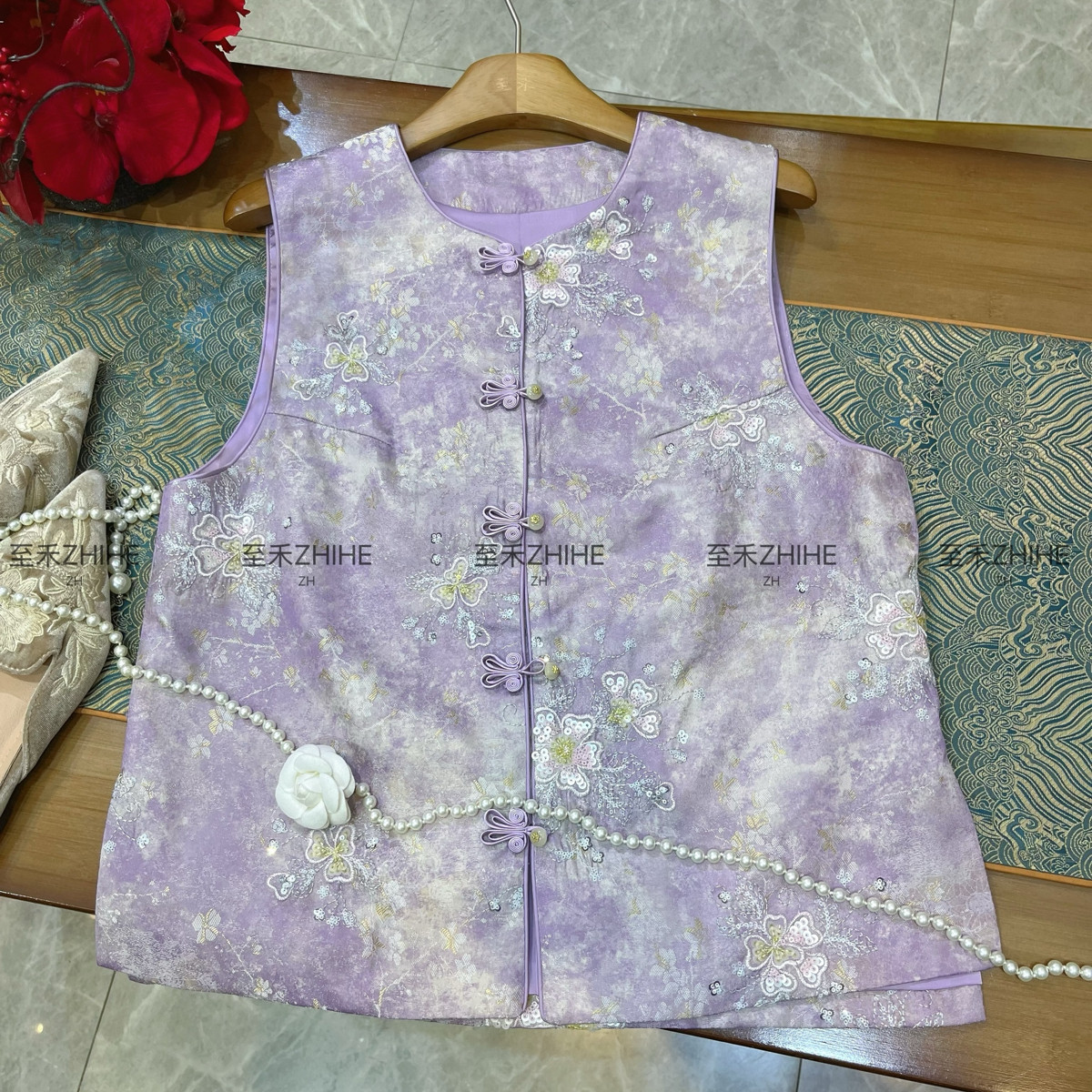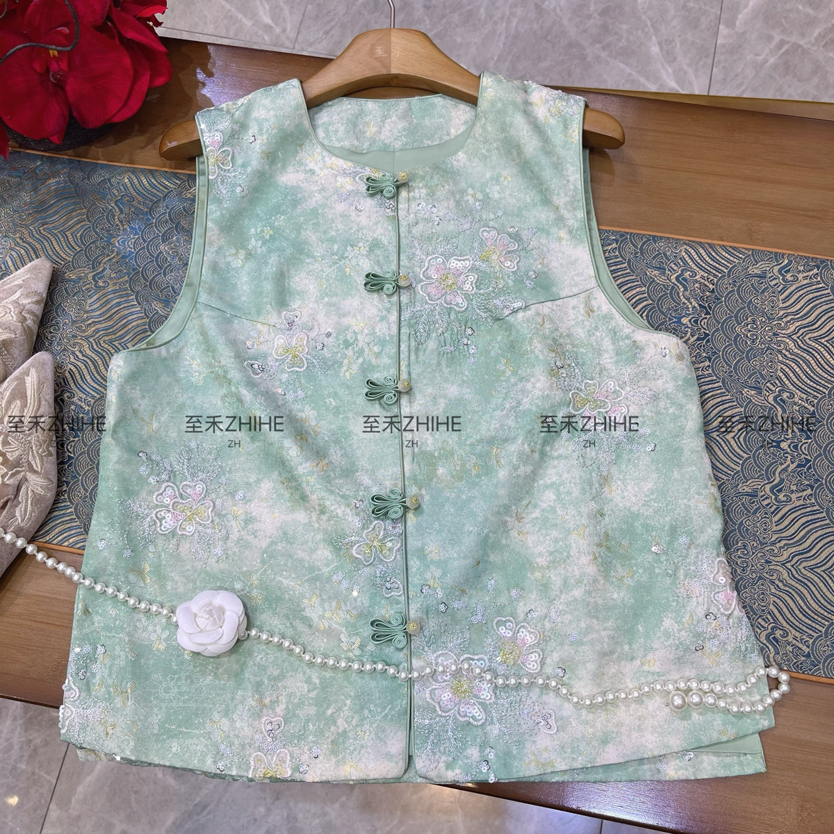 早春上新极简大牌老钱新中式人丝重工绣珠片精致扣马甲
