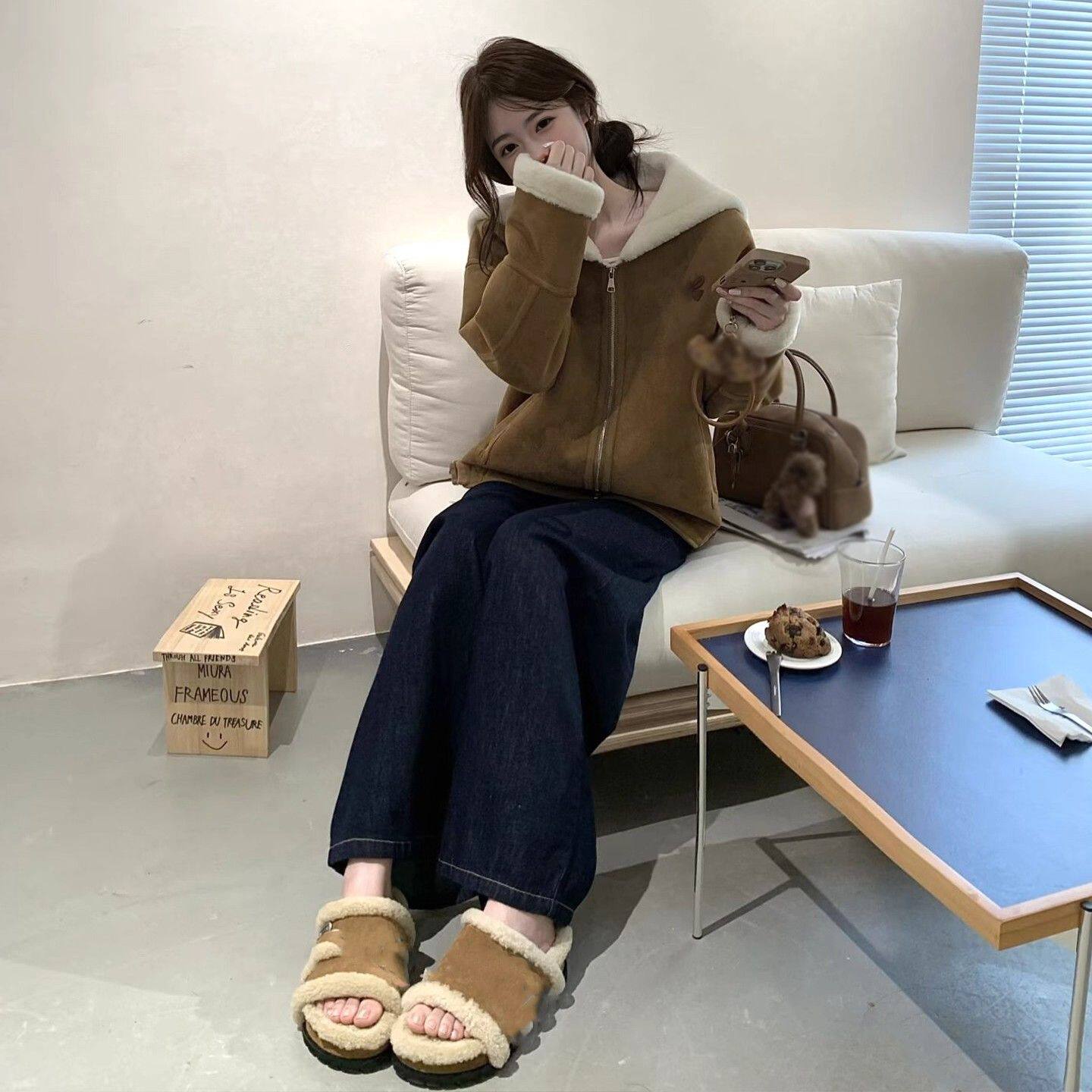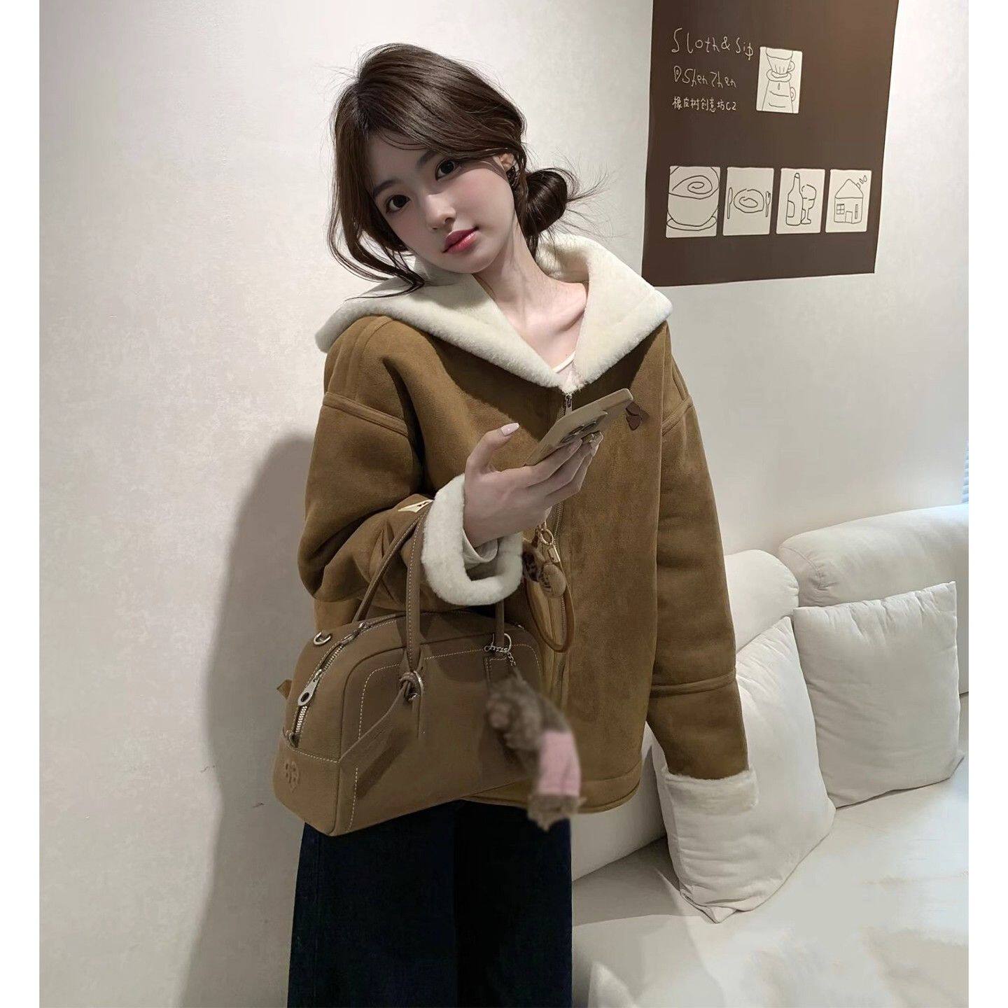 麂皮绒羊羔毛外套女冬2025新款韩系休闲宽松皮毛一体加厚毛毛上衣
