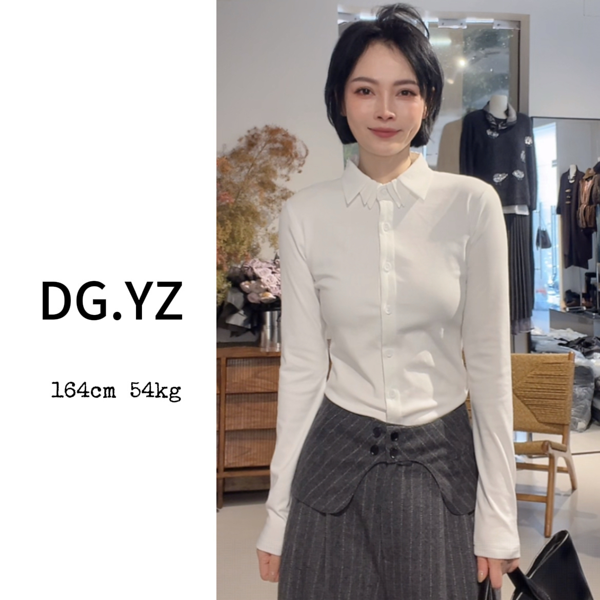 【樱子家】3099F百搭修身不规则领长袖衬衫上衣
