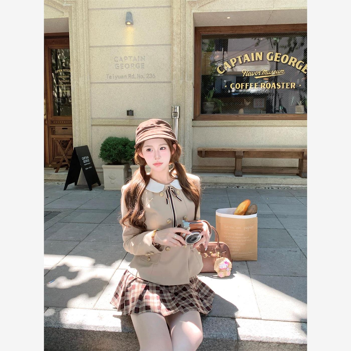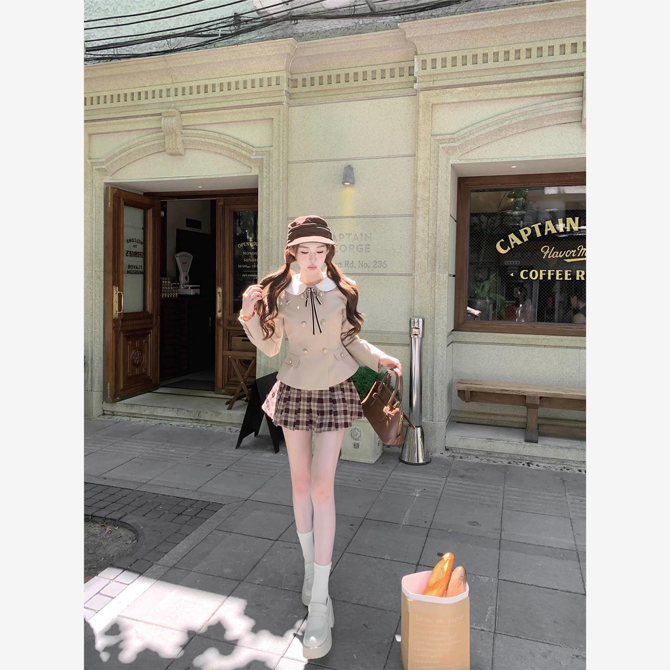 首页> 女装> 麻吉mochi【英伦千金】收腰风衣秋季新款格纹百褶短裙秋季套装女