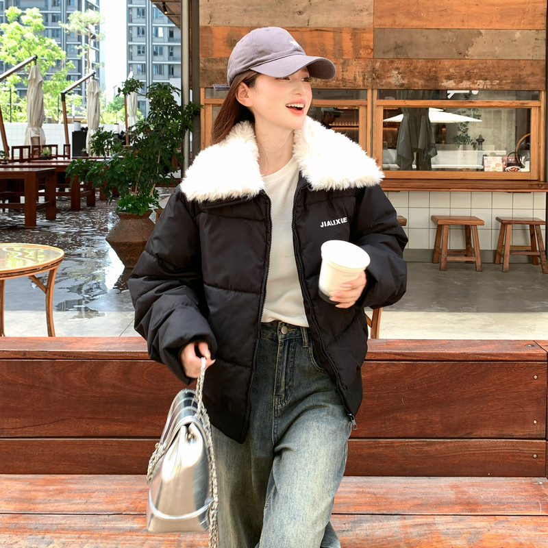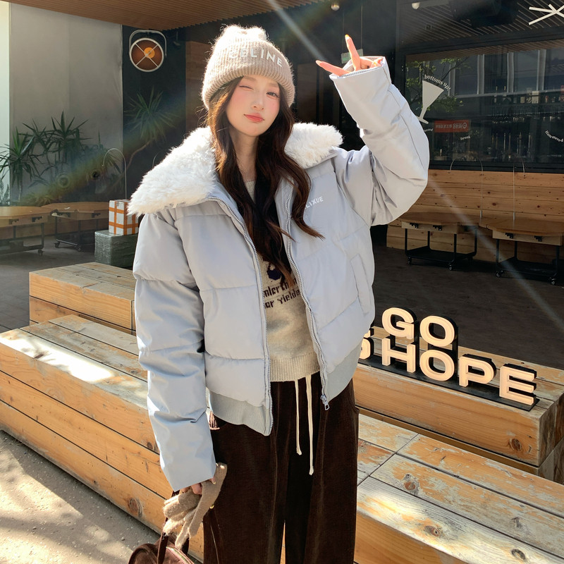 美式羊羔毛领短款棉服外套女冬2025新款小个子面包服加厚加厚