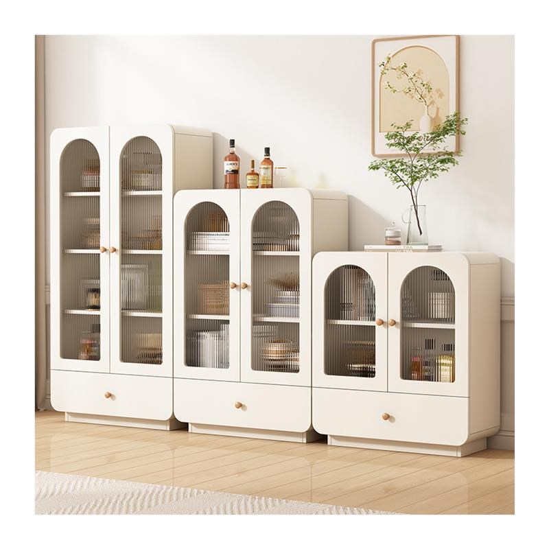 奶油风玻璃餐边酒柜书柜展示置物靠墙家用客厅立柜电视柜边柜储物