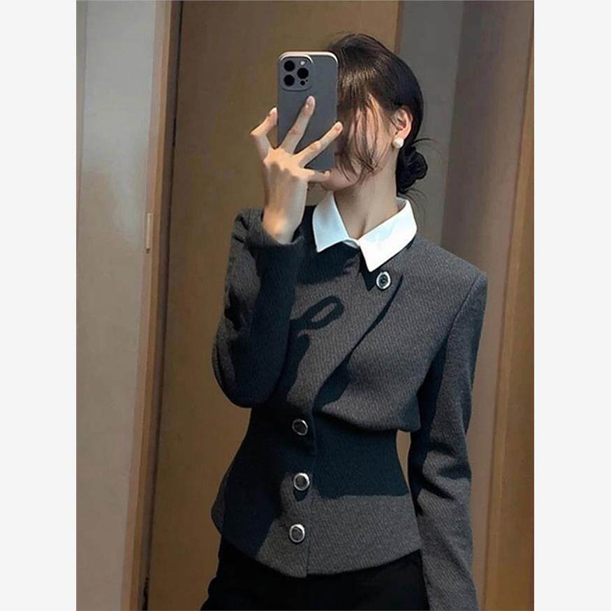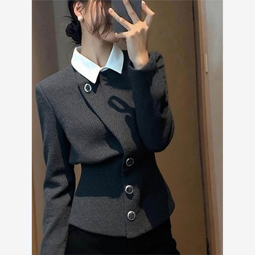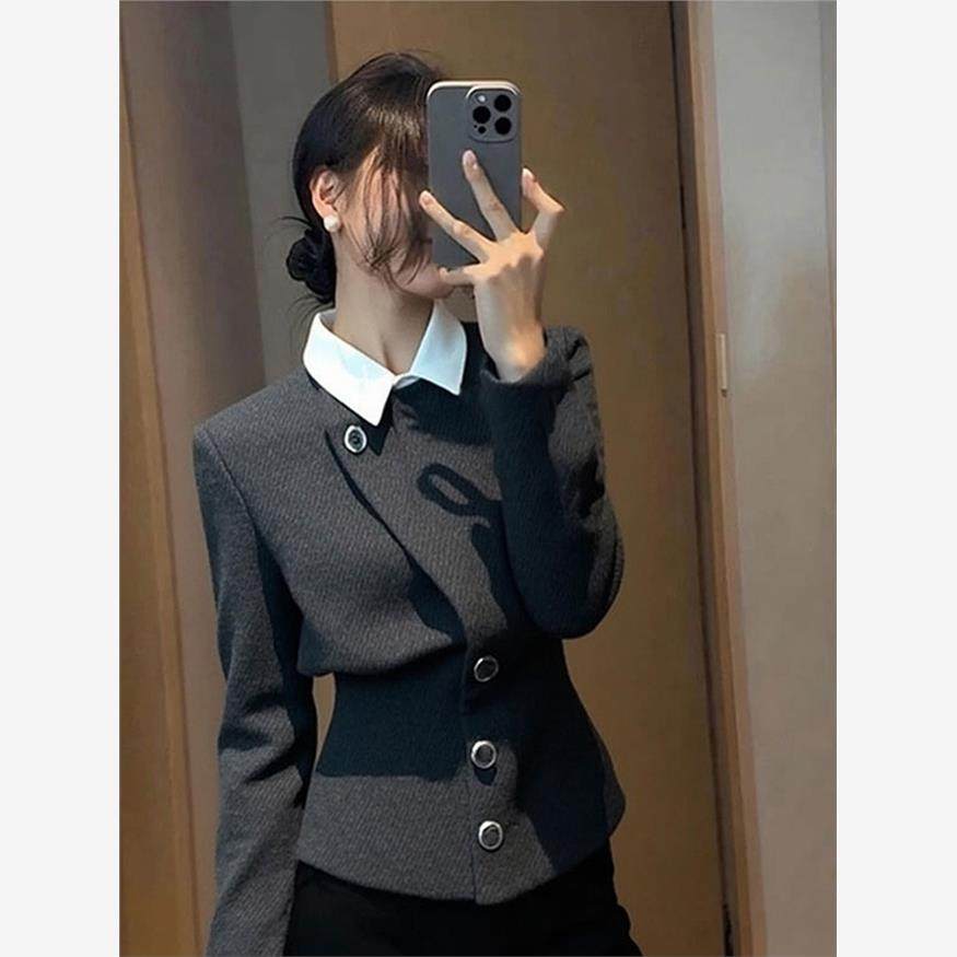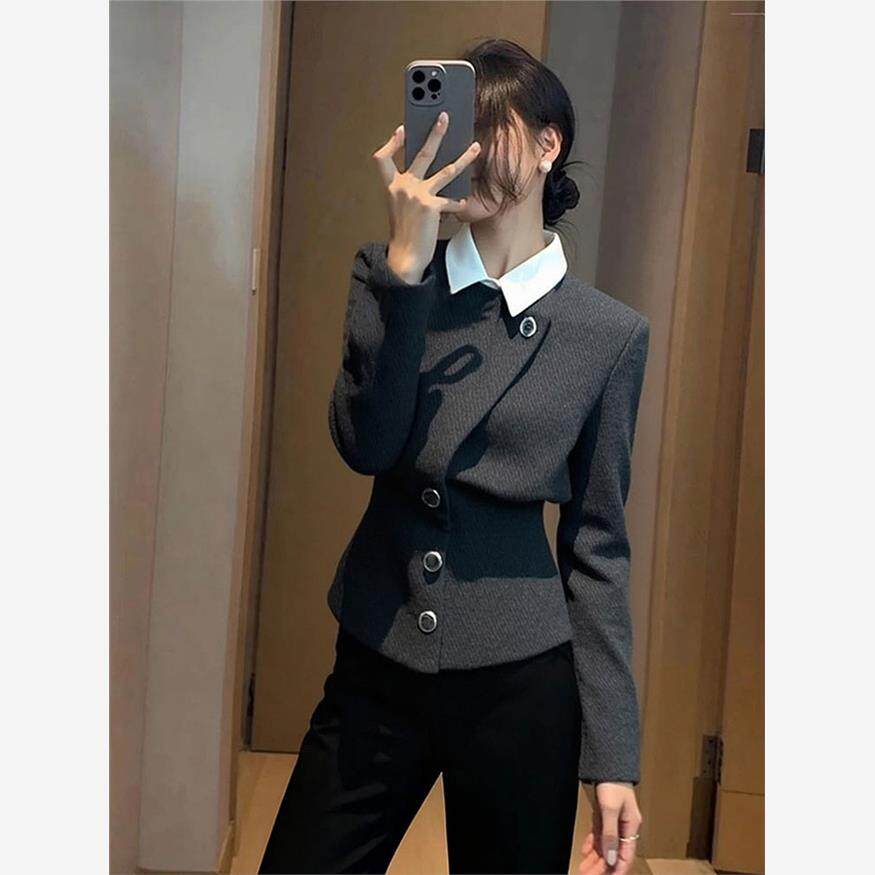 灰色假两件外套女2025秋季时尚洋气时髦轻奢高级感气质小香风上衣