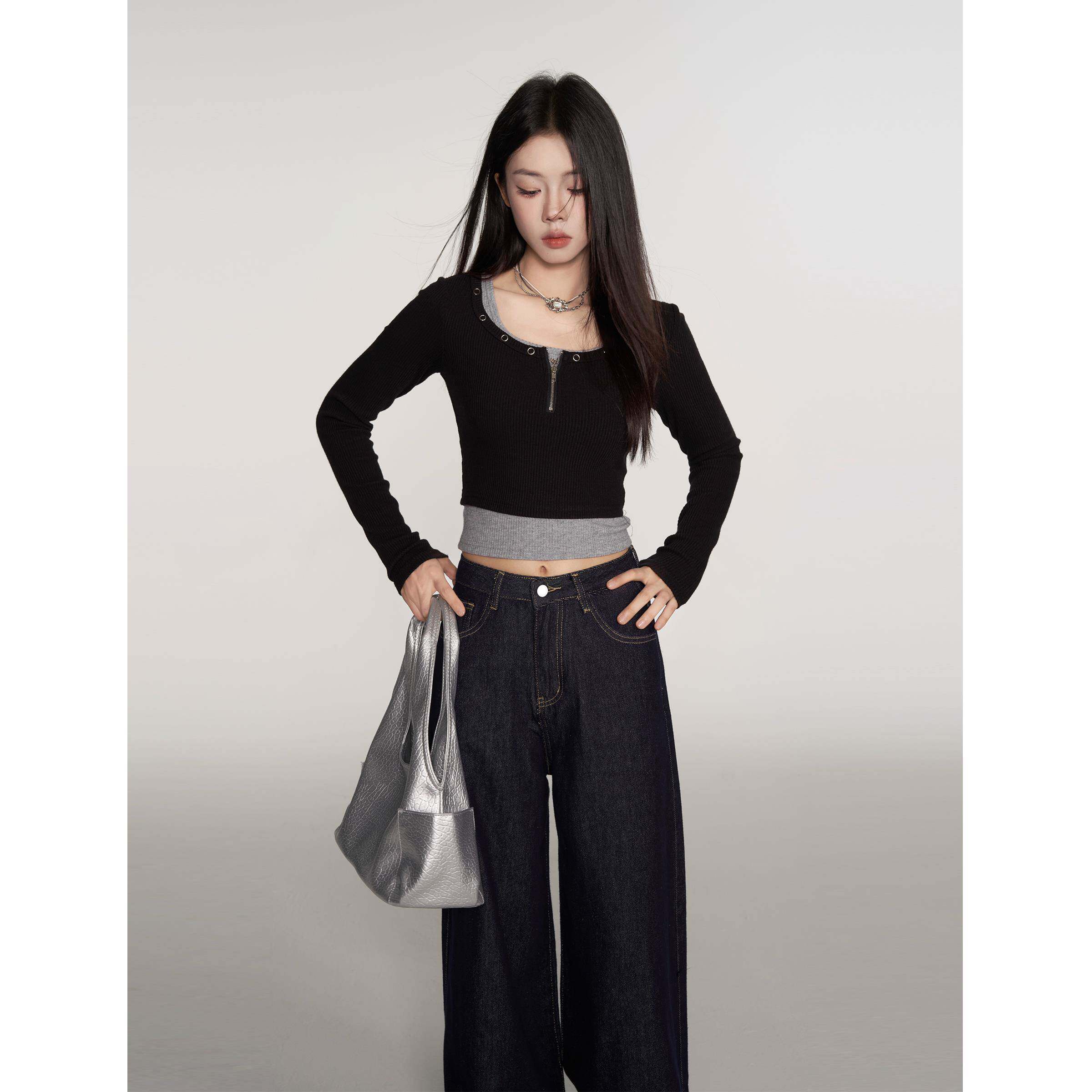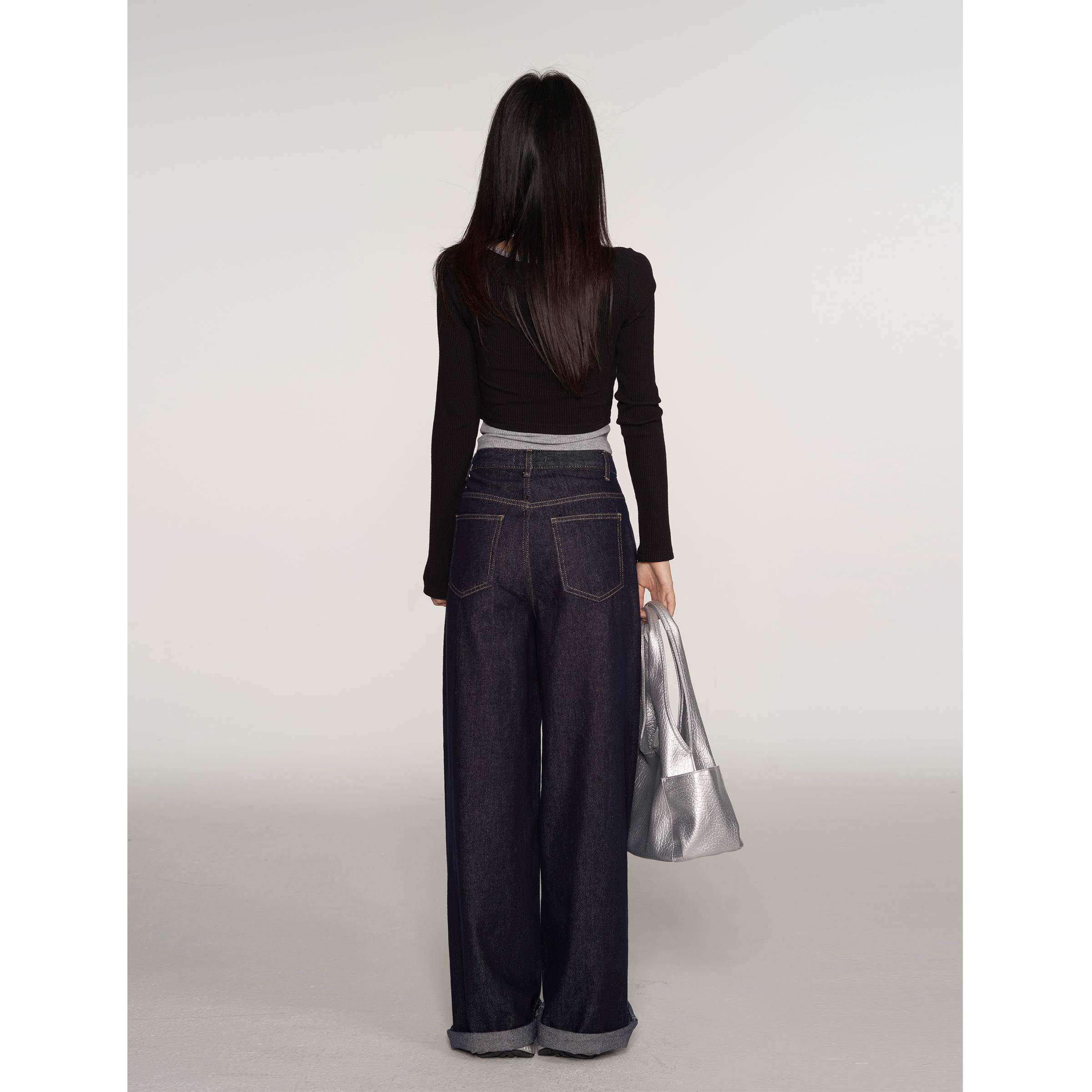一颗小野莓直筒高腰阔腿牛仔裤女春季2025年新款休闲宽松百搭长裤