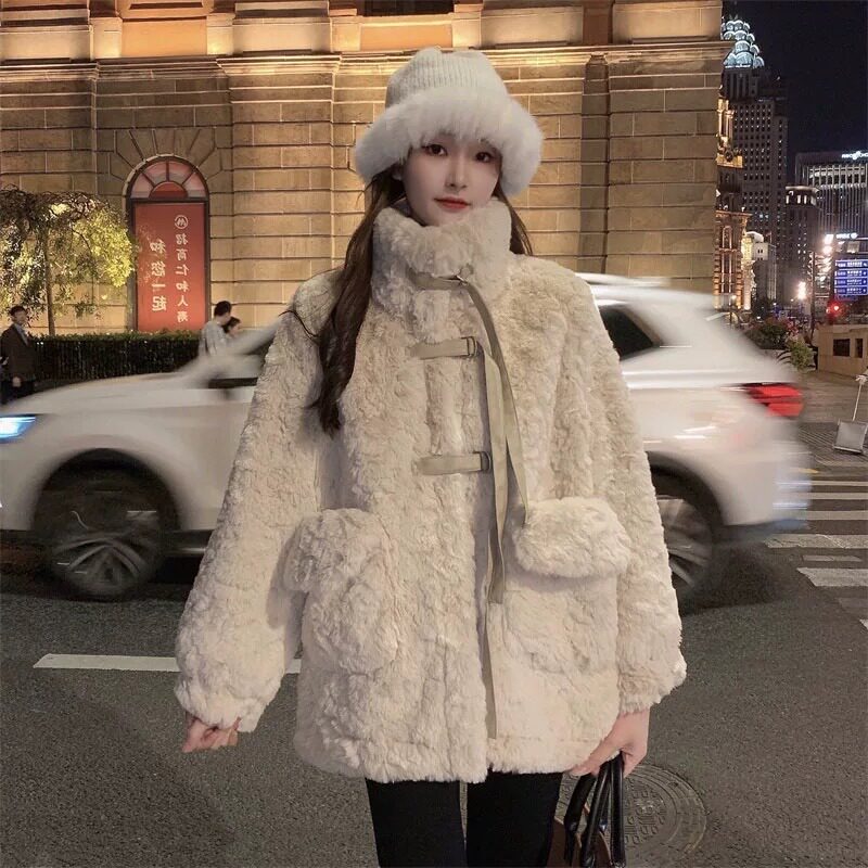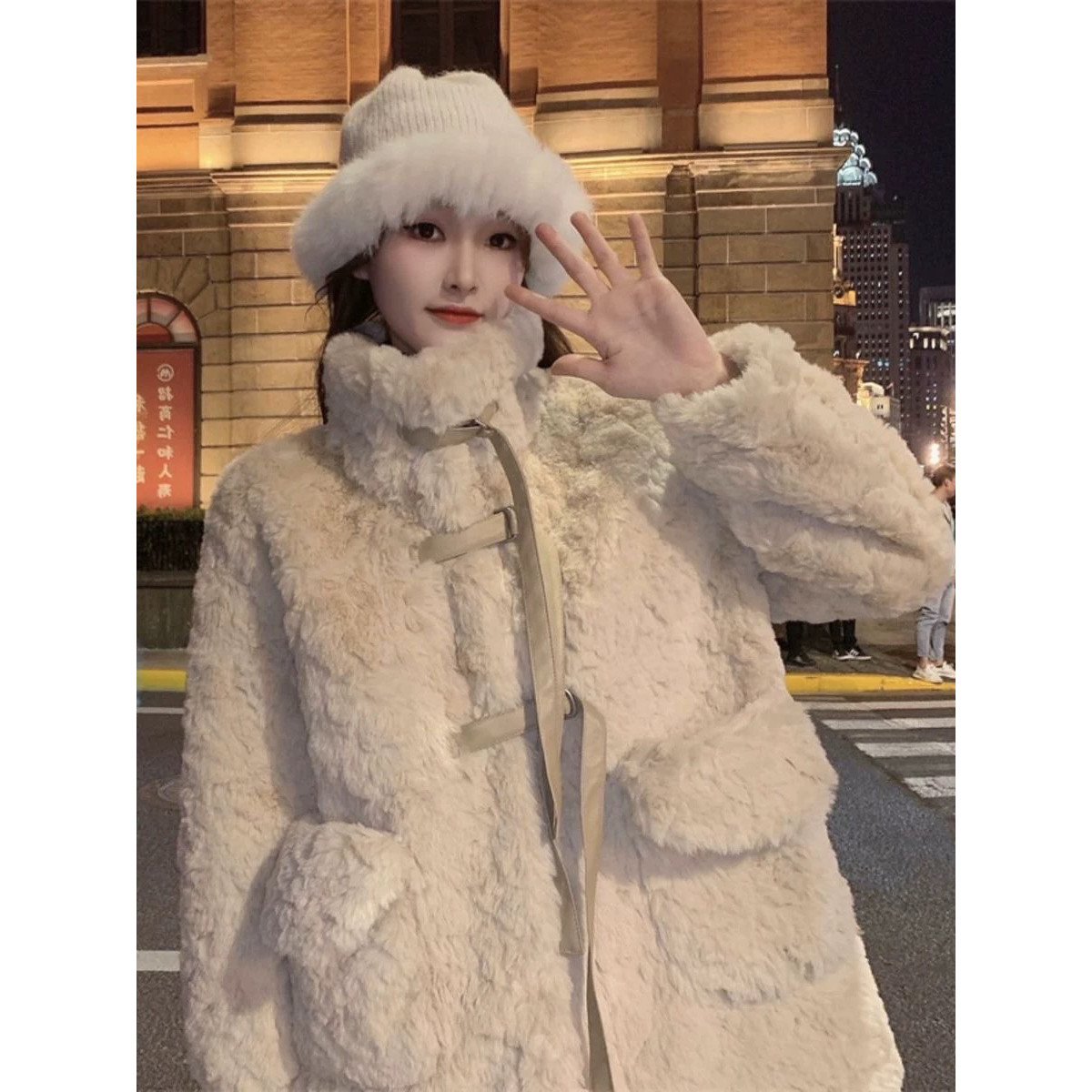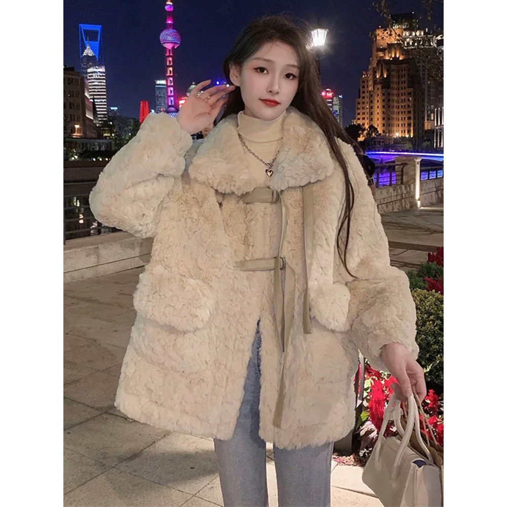 高级感超好看羊毛羔外套女冬2024新款皮草中长款宽松夹棉加厚棉服