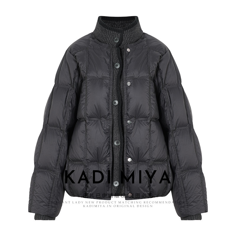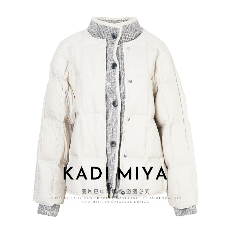 KADIMIYA【暖冬雪芙】法式拼接针织90鸭绒短款羽绒服软糯面包外套