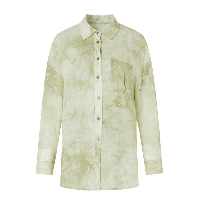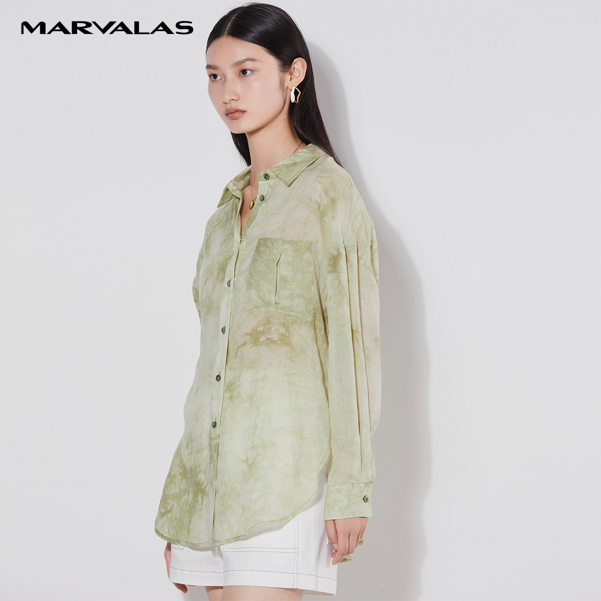 【廖廖专属】【曼德诗】花色衬衫女夏季胸口小口袋落肩袖型百搭薄
