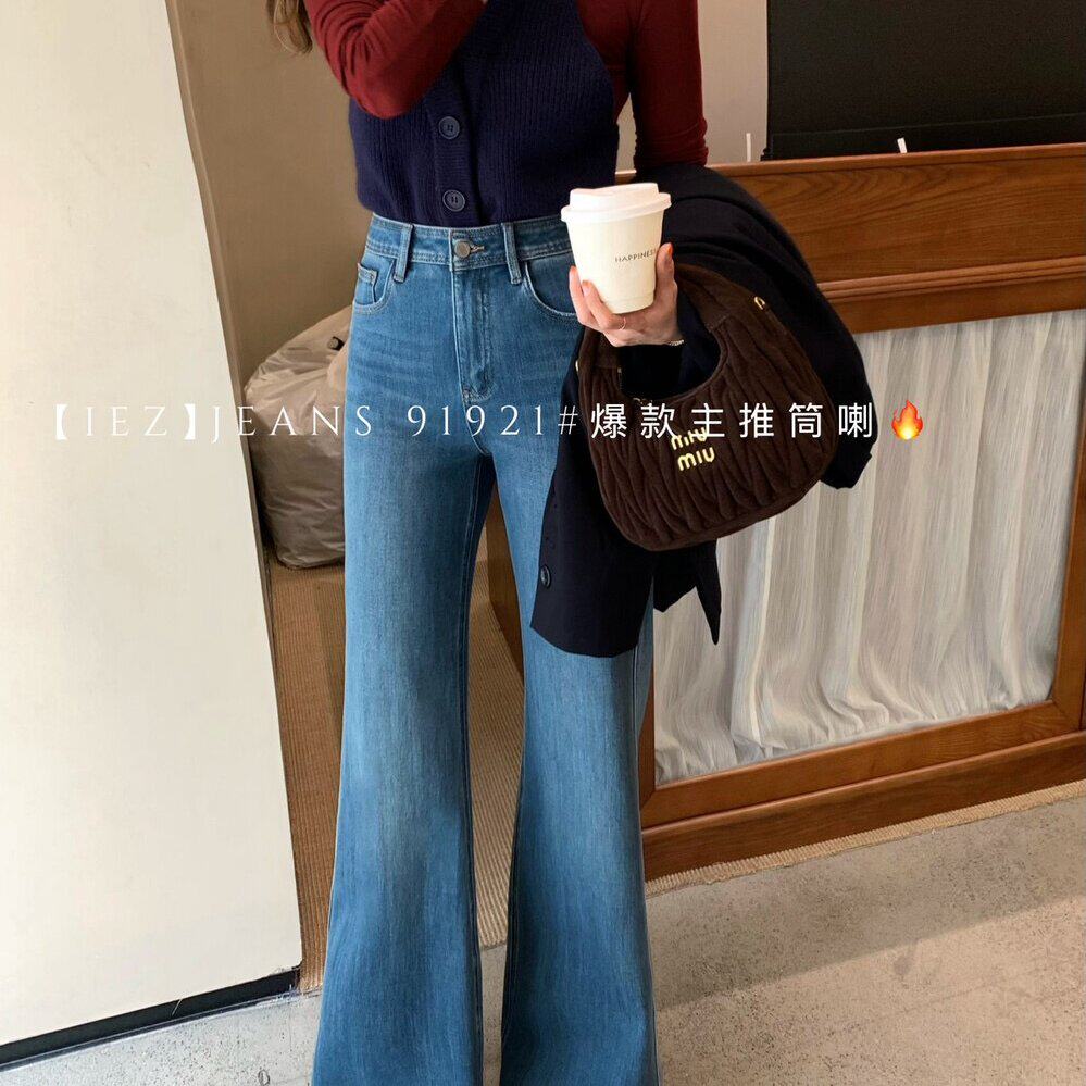 包邮2025早秋新款IEZ-爆款四面弹不贴腿微喇裤显瘦直筒喇叭裤女
