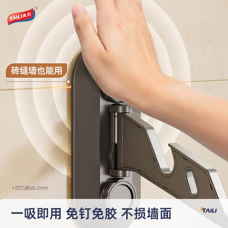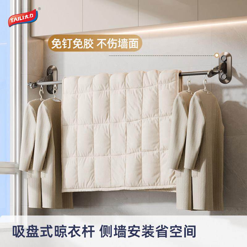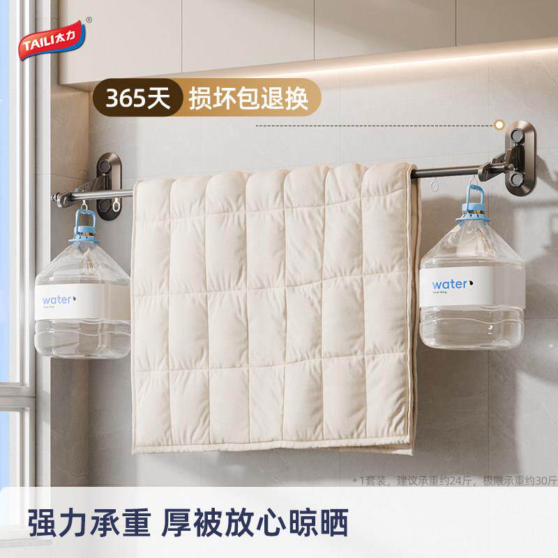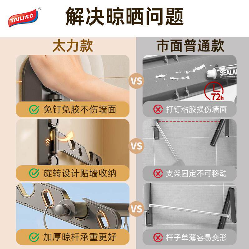 太力折叠晾衣架免打孔挂壁隐形晾衣杆阳台浴室衣架家用挂衣晾晒