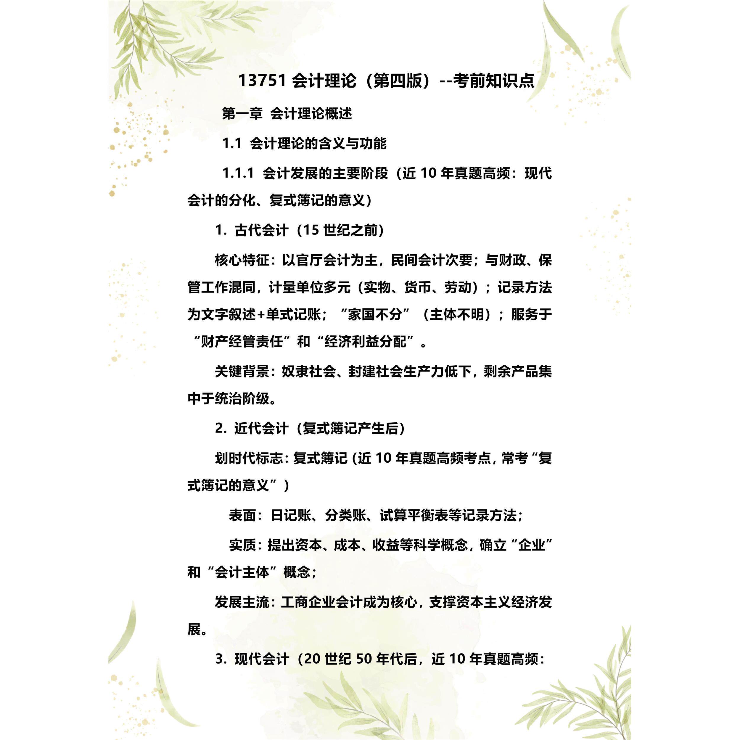 考点重点13751会计理论 考纲讲解自考笔记 资料 自考复习过关思维导图 精讲视频网课 考前押题资料