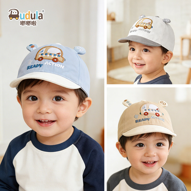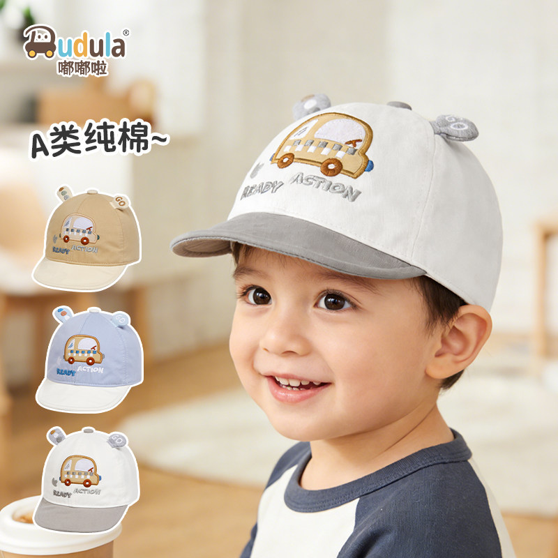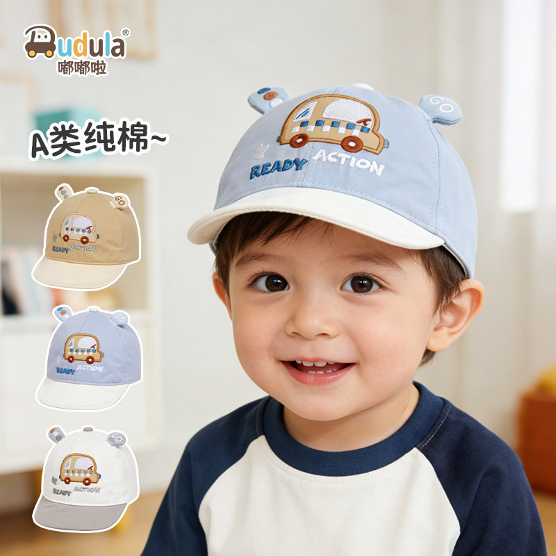 首页> 儿童> 嘟嘟啦春季宝宝小汽车薄款鸭舌帽男女儿童纯棉帽子小孩软檐遮阳帽