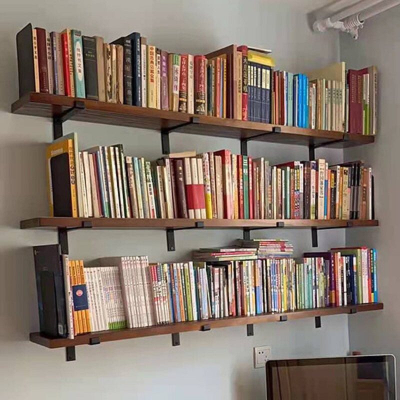 墙上壁挂实木置物架一字隔板复古层板书架客厅墙面厨房承重收纳架
